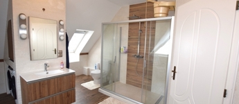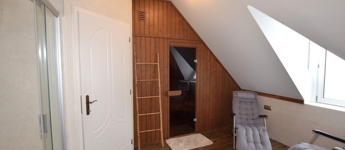 Az emeleten a hálószobák vannak. A gyerekszobákat a közös fürdőszobájuk választja el, gardrób pedig minden szobához tartozik.