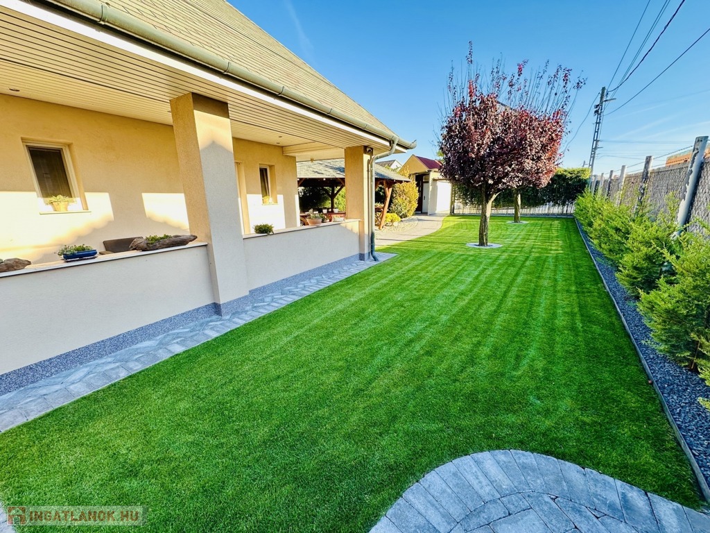 - Minőségi gyeppel és öntöző rendszerrel ellátott.