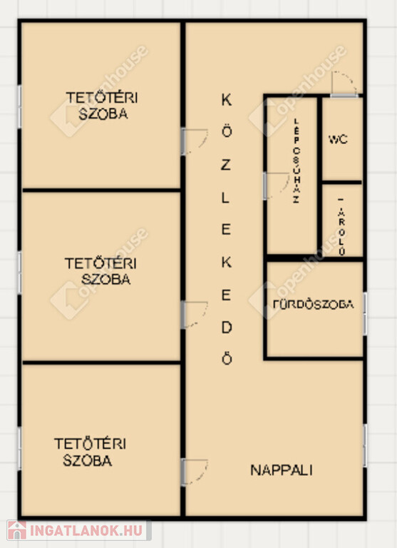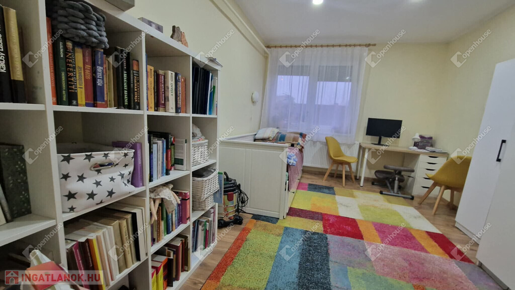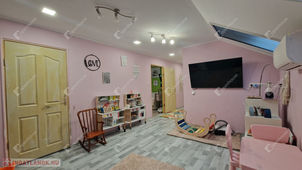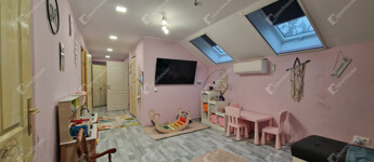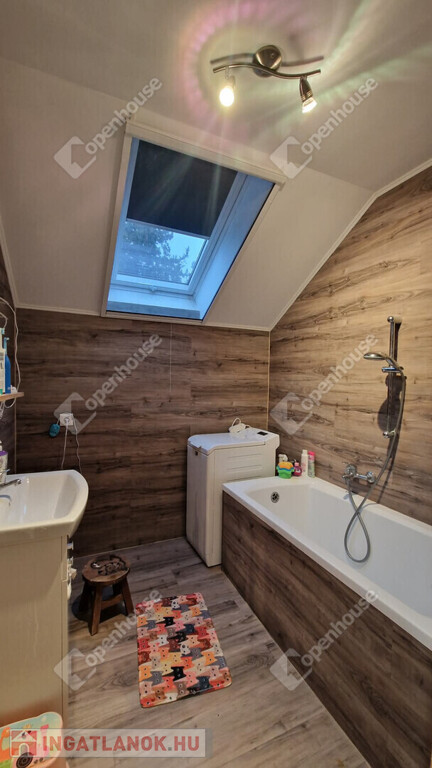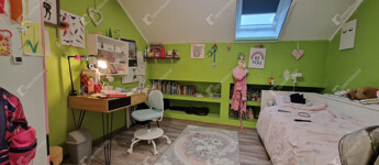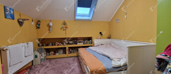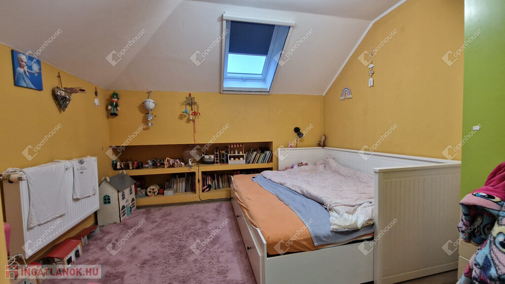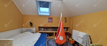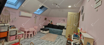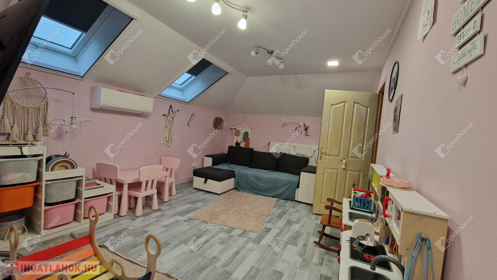 Tetőtéri szintjén - közlekedő, nappali, fürdőszoba külön wc illetve három külön nyíló közel 10 m² méretű vidám gyerekszoba került kialakításra. A nappali részén ha az új tulajdonos igényelne egy konyhai részt, ennek előkészítése megtörtént.