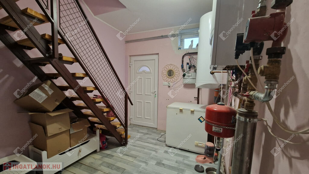 Előszoba, konyha, fürdőszoba, háztartási helyiség, étkező, nappali két kényelmes méretű szoba. Étkezőből nyílik a lépcsőház, ahonnan a tetőtéri szint megközelíthető illetve a gépészet is itt található. Ebből a helyiségből az udvar felé szintén adott egy kijárat.