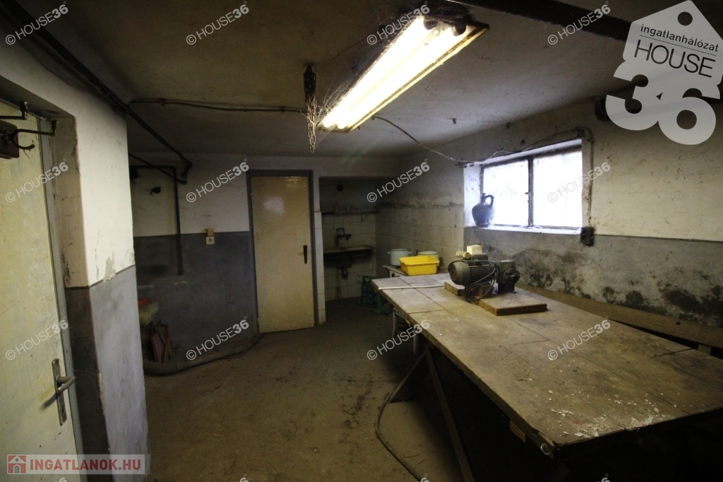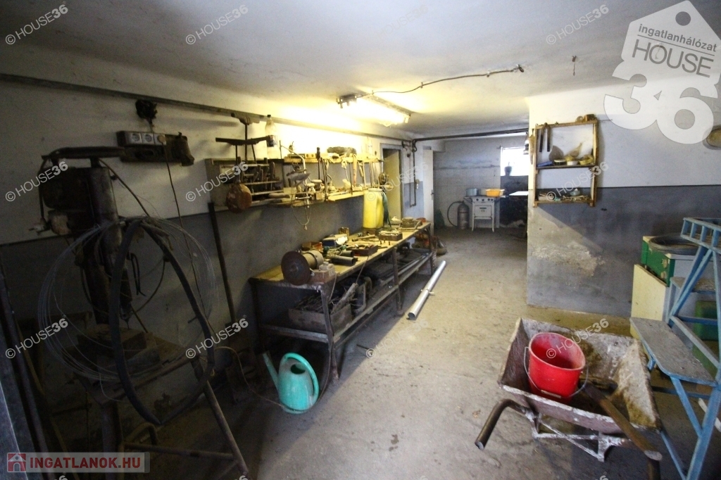 Az alsó szinten (több mint 100 m2) pince, műhely, tárolók.