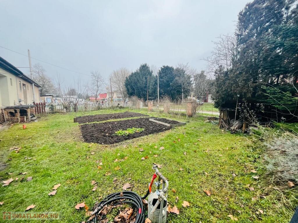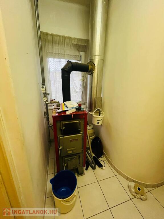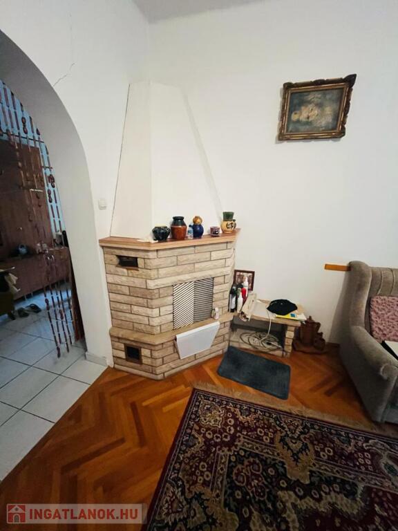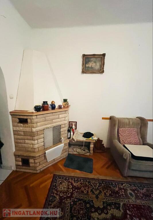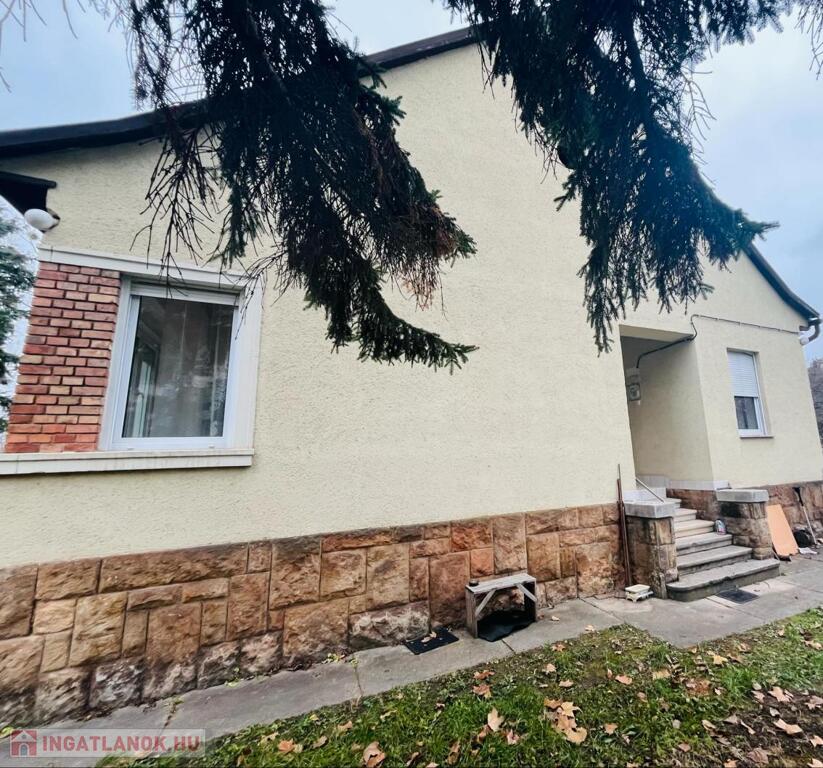 Eladásra kínálunk a Tata és Komárom között félúton elhelyezkedő Almásfüzitőn, csendes nyugodt utcában egy 1806 m2-es telken levő, 115 m2-es tégla építésű nyeregtetős ikerházat. Az ingatlan polgári stílusban épült a 40-es években, de 2000-ben teljes körű felújításon esett át. Masszív szerkezet, gondosan karbantartott tehermentes ház. Az ingatlanban 2 tágas szoba, 1 kisebb szoba, 1 táncparkettnyi nappali, konyha, kamra, külön fürdő és toalett kapott helyet. Tágas terek, könnyű átláthatóság jellemzi. A lakóház fűtését keringető szivattyúval-kazánnal, a közeli hőközpontból központi fűtésre is csatlakoztatható radiátoros hőleadóval oldották meg. De helyet kapott 3 helyiségben hűtő-fűtő klíma is. A nappaliban egy barátságos, nyugalmat árasztó, fázós téli estékre alkalmas kandalló is megtalálható. A 2000-es felújítás során új műanyag nyílászárók, redőnyök, új burkolatok lettek elhelyezve. Az ingatlan szolgáltatóhoz bekötött riasztórendszerrel és a kertre irányított térfigyelőkkel védett. A napfényes teraszról csodálatos kilátás nyílik a gyümölcsfákkal, és gondozott növényekkel ölelt tágas kertre. Pincéje kiváló lehetőség, zöldségek, gyümölcsök tárolására, a teljes tetőtérhez pedig padlás tartozik.