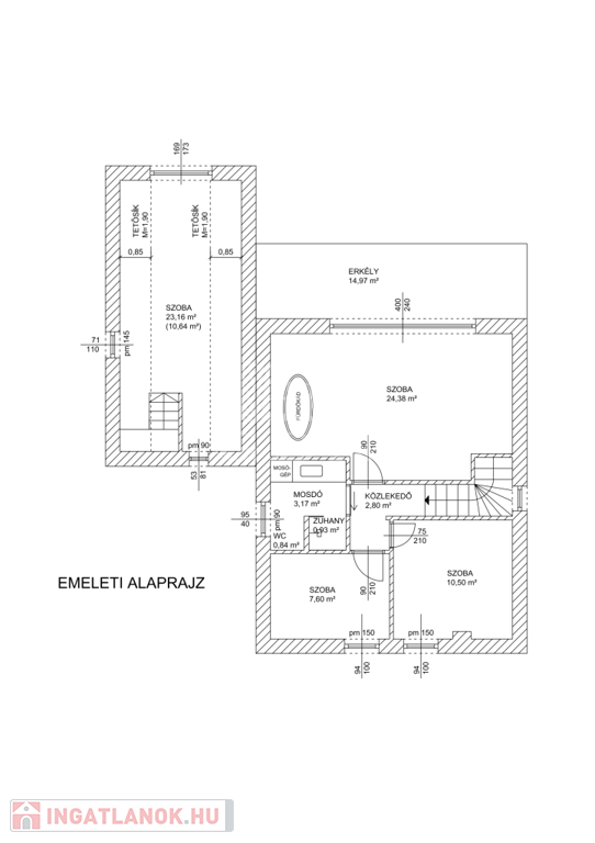 4 hálószoba (3 az emeleten)