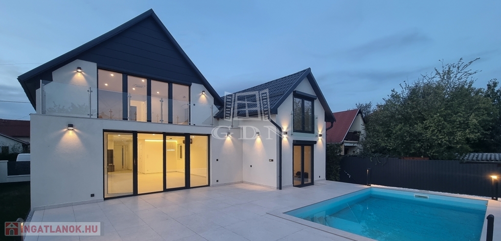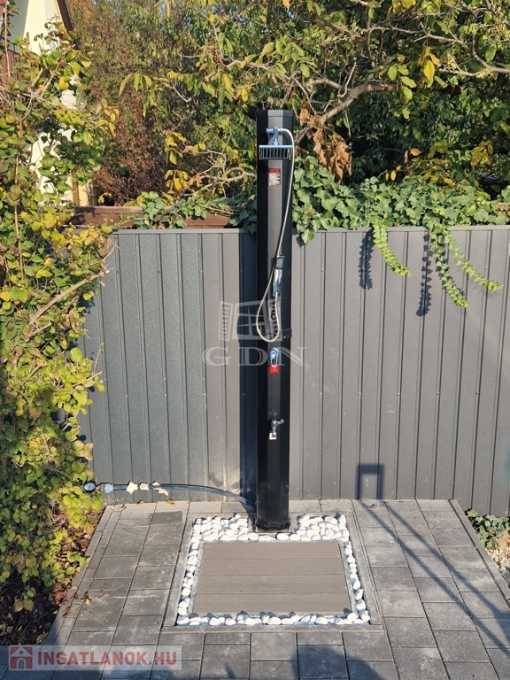 A kültér déli fekvésű: a medence és a terasz egész nap napfényben fürdik. Az automata öntözőrendszer és a robotfűnyíró biztosítja a gondozásmentes kertet. A terület csendes, barátságos környék – kávézó és olasz étterem pár perc sétára.