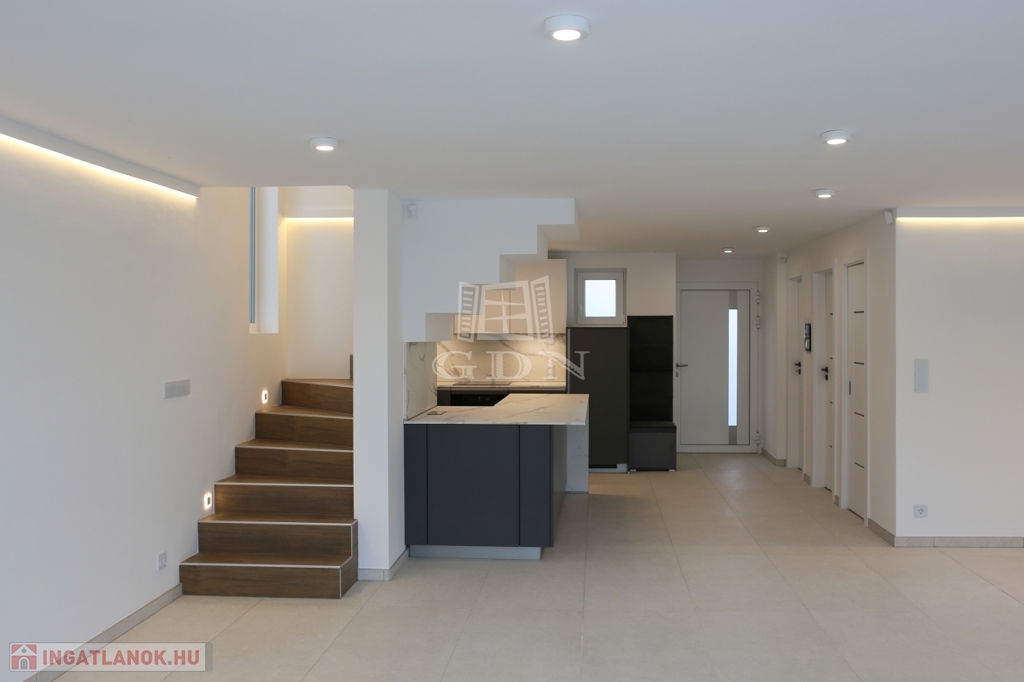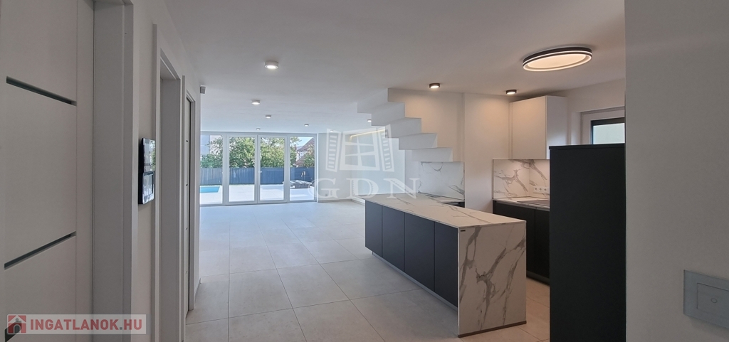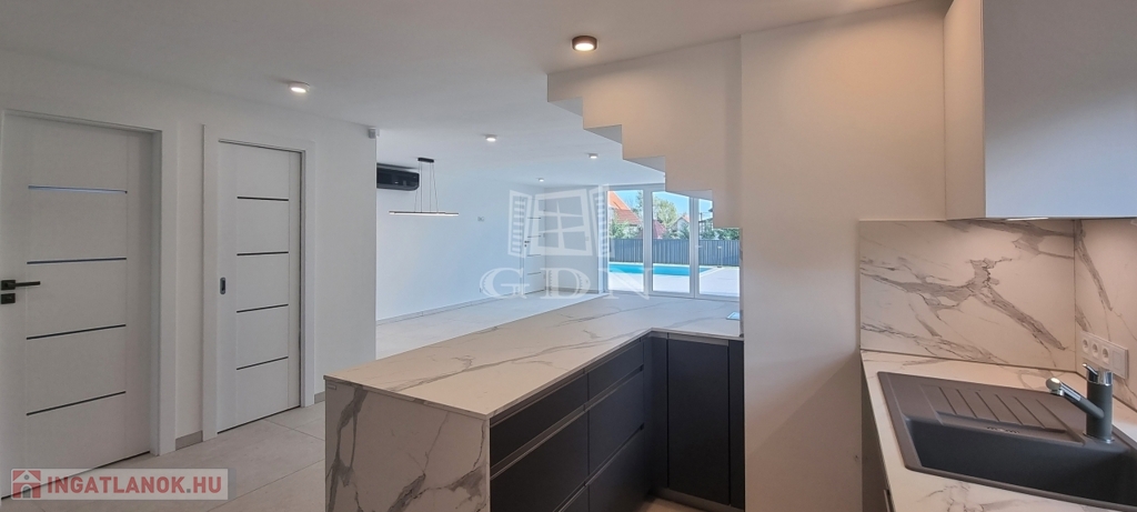 Ez az otthon nem csupán egy ingatlan — életstílus. A belső terek modern, prémium anyagokból készültek: olasz 60×120 cm padlólapok, Venato Bianco slimline munkalap, szálcsiszolt rozsdamentes acél élvédők és biztonsági üvegkorlátok. A fürdőszobák okostükörrel, digitális hőmérséklet-kijelzős csaptelepekkel és padlófűtéssel felszereltek. A villa minden tekintetben a legmagasabb igényeket is kielégíti.