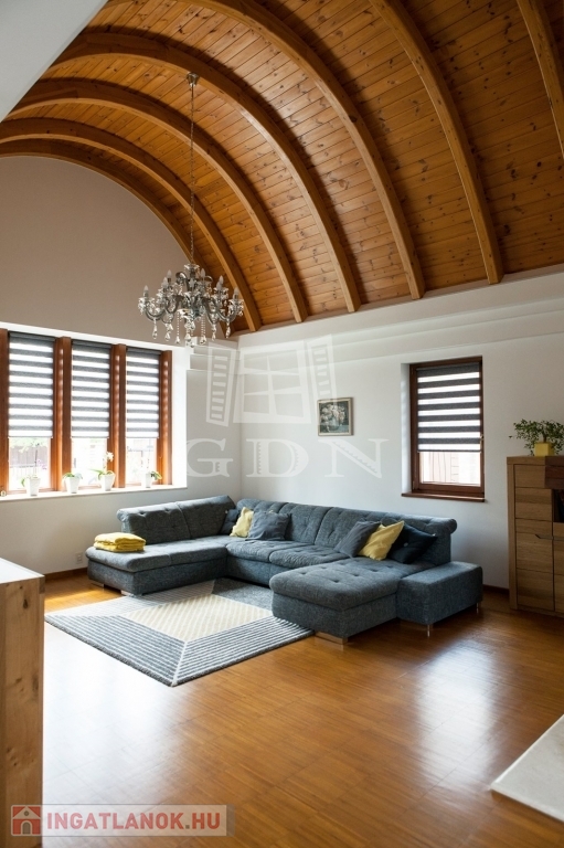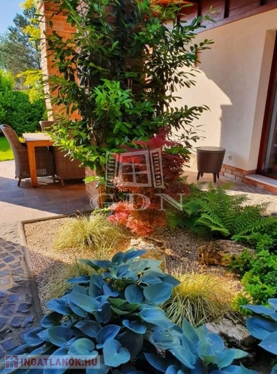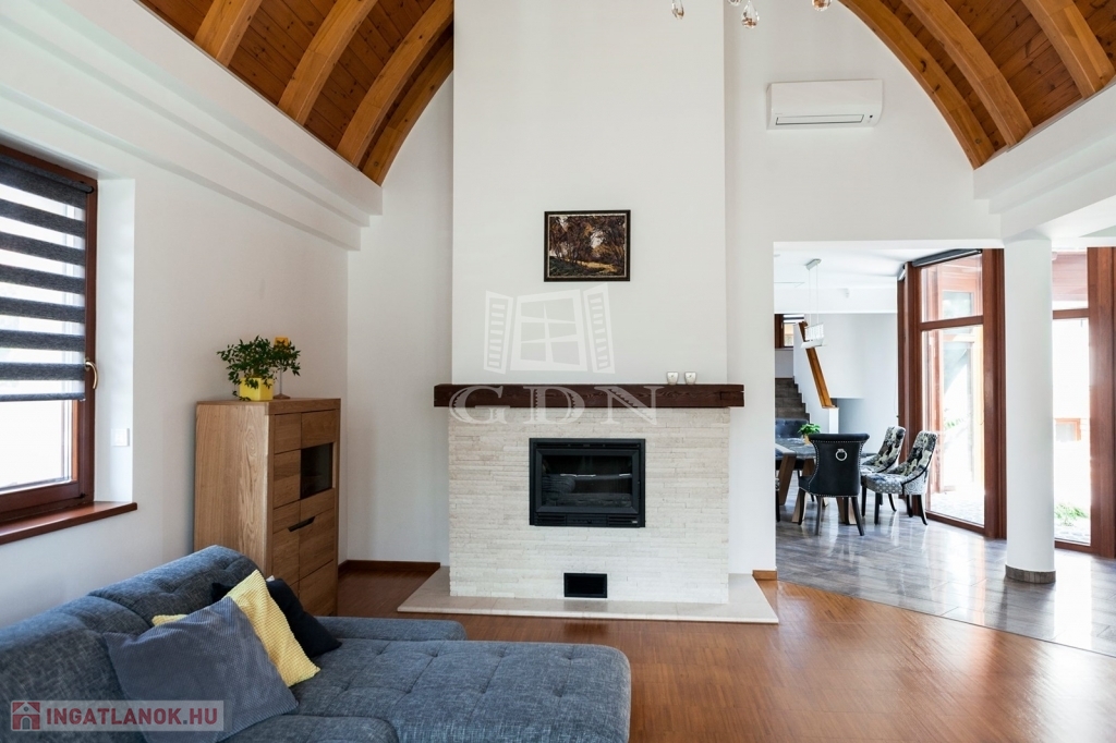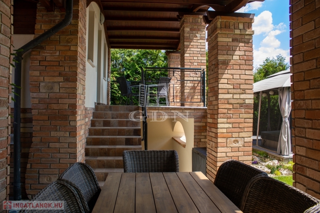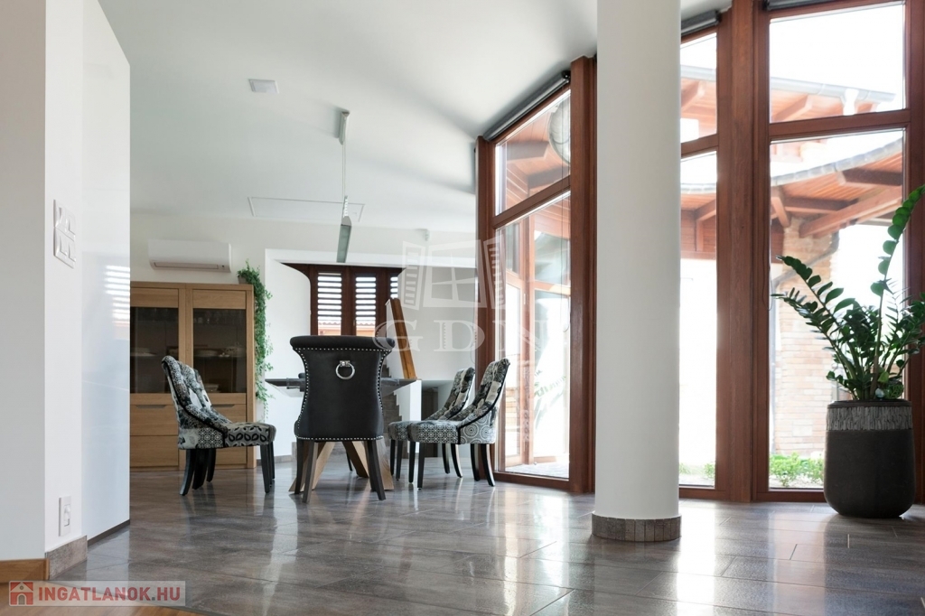 Az ház 2016-ban épült a legjobb minőségű anyagok felhasználásával. Rendelkezik kamerás kaputelefonnal, könyvtár galériával, átriummal ahová bazalt kockás járdán juthatunk el vagy éppen az étkező nyitható üvegajtaján.