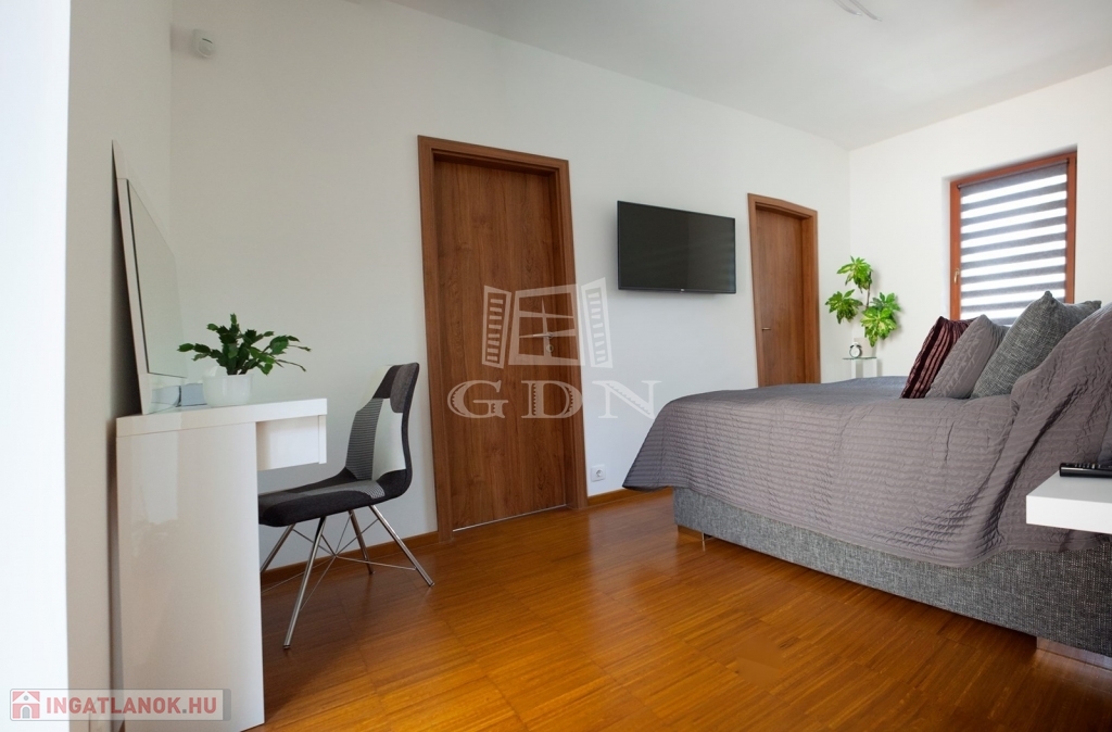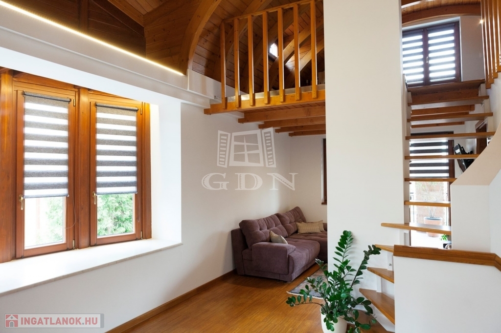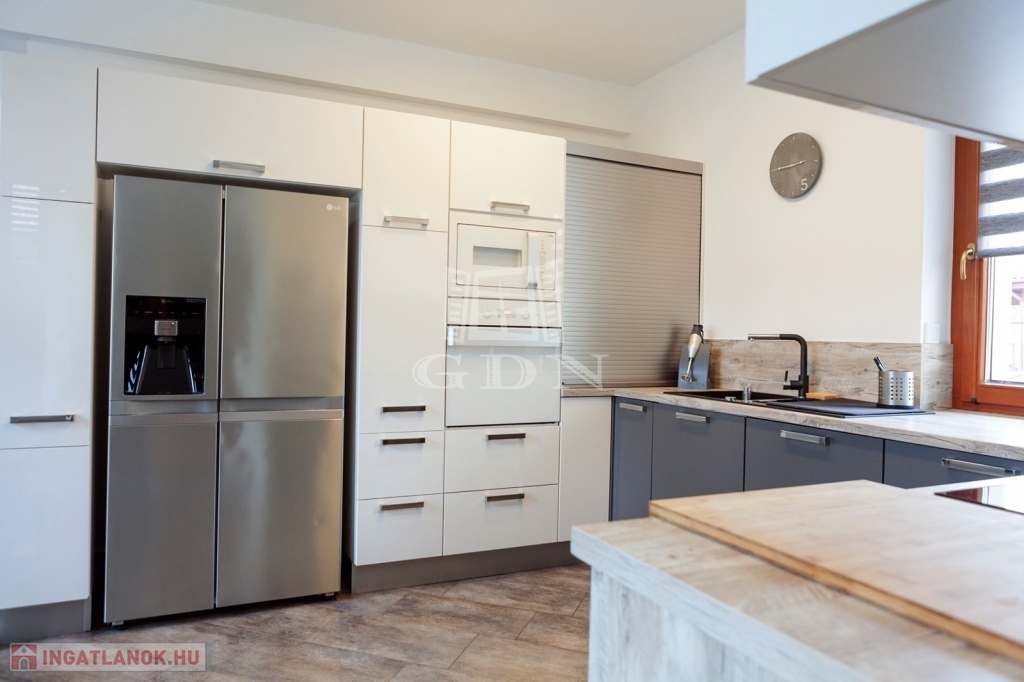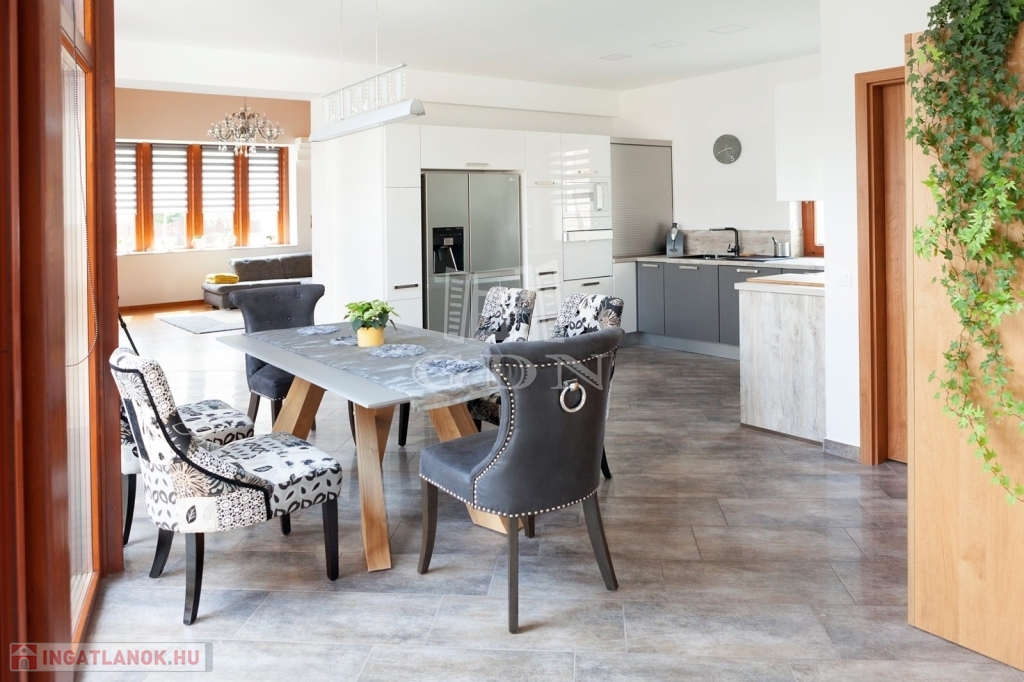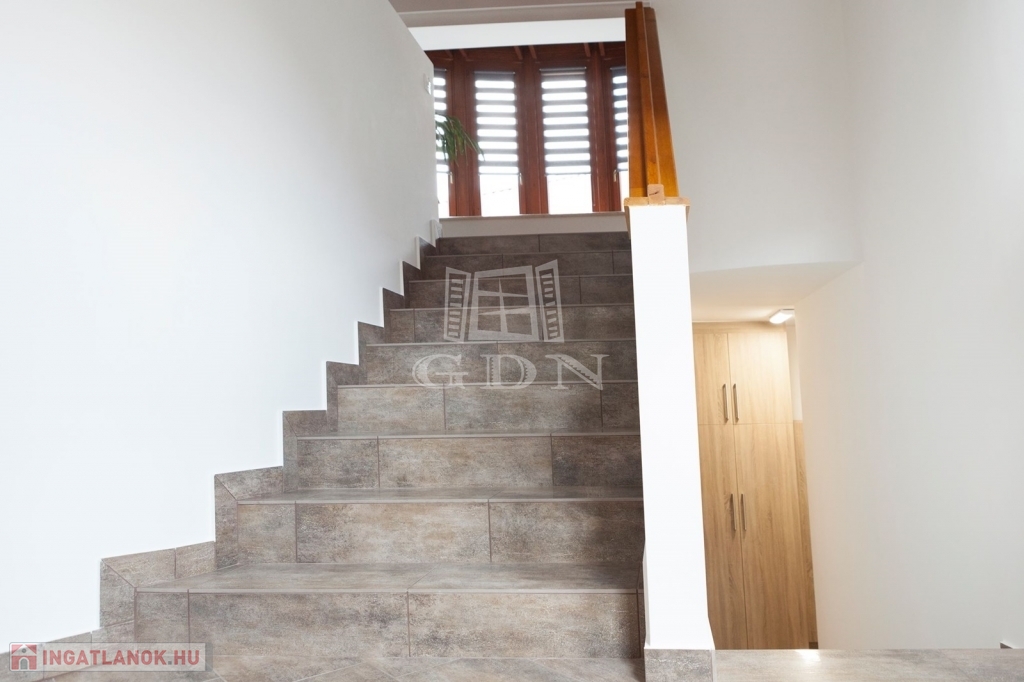 Az ház 2016-ban épült a legjobb minőségű anyagok felhasználásával. Rendelkezik kamerás kaputelefonnal, könyvtár galériával, átriummal ahová bazalt kockás járdán juthatunk el vagy éppen az étkező nyitható üvegajtaján.