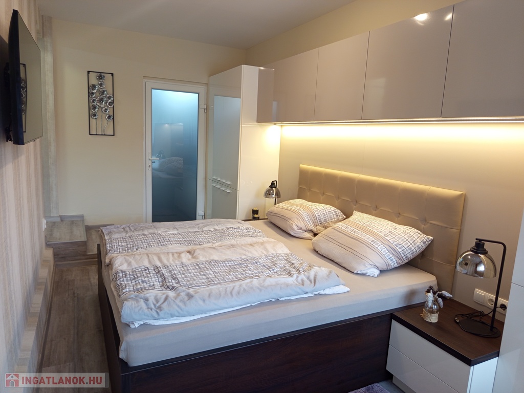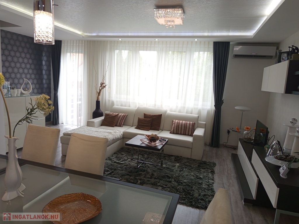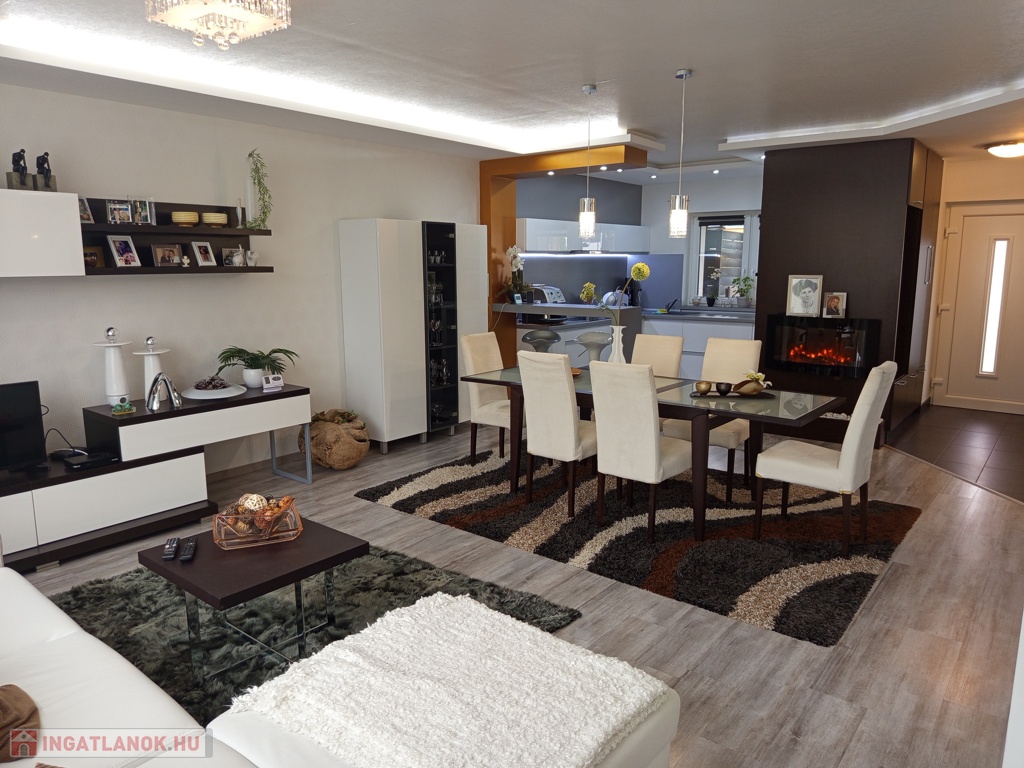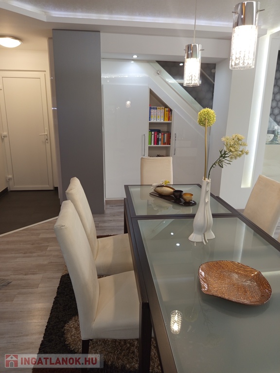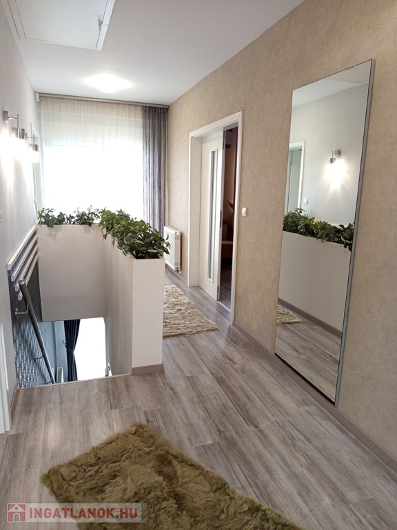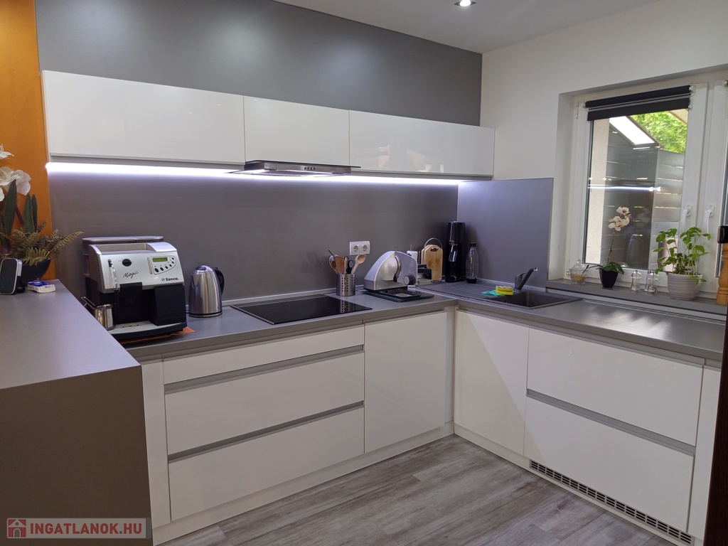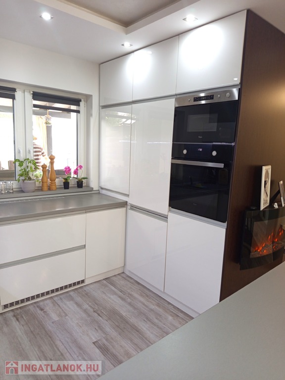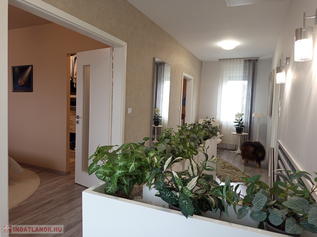 Az ingatlan 3+2 szobás és az elmúlt évek során számos felújításon esett át, melynek köszönhetően luxus komfort kategóriába sorolható. Kiemelkedő felszereltség és modern, letisztult, praktikum jellemzi ezt az otthont. Az ingatlanban megtalálható két fürdőszoba és wc, modern konyha beépített gépekkel (hűtő, mosogatógép, sütő, mikró), mindkét szinten klíma. a mosókonyhában került felszerelésre a gáz-cirkó kazán és mellette beépítésre került egy külön bojler is. Az emeleti fürdőszobában hidromasszázs, jakuzzis sarokkád kapott helyet. a belsőépítészet tekintetében magasfényű, felső kategóriás bútorok kerültek beépítésre, a burkolatok, szaniterek is mind kiemelkedő minőségűek, a hő és hangszigetelt nyílászárók szúnyoghálóval, redőnnyel lettek felszerelve.
