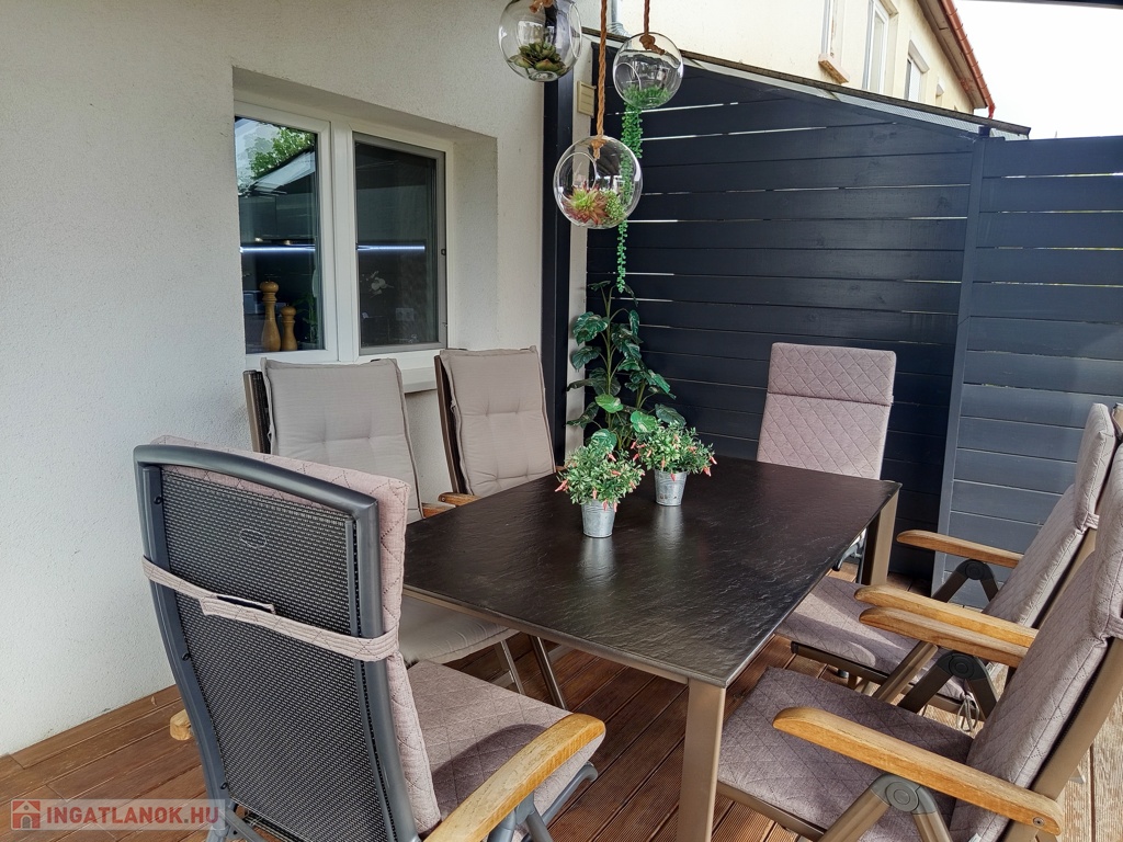 Az elektromos távirányítású, infrapanelekkel ellátott fűthető dupla garázs és a kiépített riasztó és kamera rendszer szintén a tulajdonos kényelmét szolgálja. Környezettudatosságról árulkodik az energiatakarékos rendszerek használata, mint pl. a led rendszerek és a 15 cm-es homlokzati szigetelés. a szobákban hangszigetelő panelekkel fedett falak a nyugodt pihenésről gondoskodnak. a járólapozott garázsból nyílik egy tárolóhelyiség, mely alkalmas lehet nyári konyhának, illetve egy szintén járólapozott pince. Bevezetésre került a három fázisú ipari áram (380v). Az udvar rész a szomszédoktól elkülönített, térkővel borított. a fedett, hangulatos terasz lehetőséget ad baráti összejövetelekre. Elhelyezkedését tekintve kertvárosi részen található, csendes környezetben. Az ingatlan K-Ny-i tájolású. Közelben gyalogosan is csupán pár percre megtalálható Spar, óvoda, játszótér, fagyizó, gyógyszertár, kisebb boltok, stb. Városközpont autóval mindössze hat percre van, a parkolás díjmentes Baja teljes területén. Az ingatlan per, teher és igénymentes, rövid határidővel költözhető.