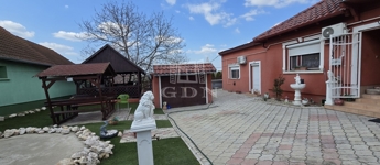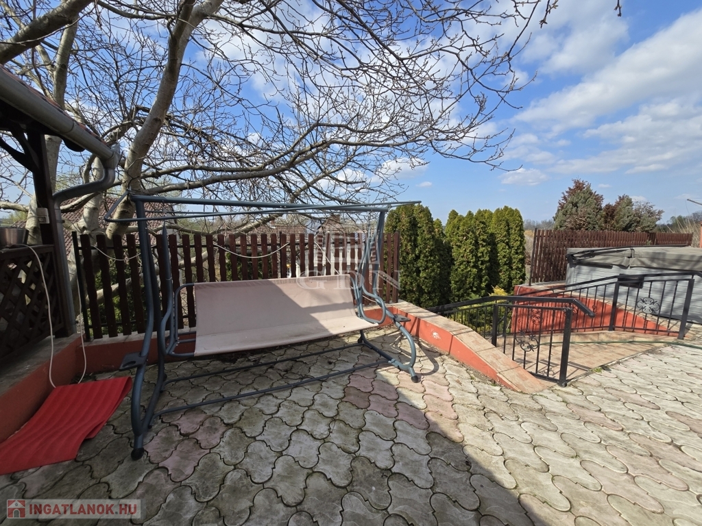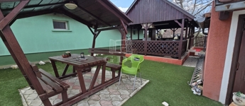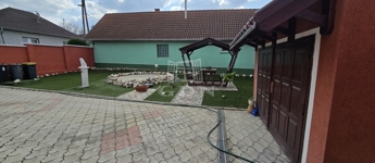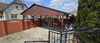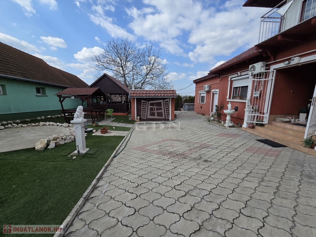 Az alsó udvar szintén részben térkövezett, és külön utcáról is megközelíthető. Itt két fedett gépkocsibeálló került kialakításra, amelyek alatt akár több jármű parkolása is kényelmesen megoldható, így az ingatlan nemcsak nagycsaládosok számára ideális, hanem akár vállalkozási vagy befektetési célra – például szállásadásra – is kiváló lehetőséget kínál.