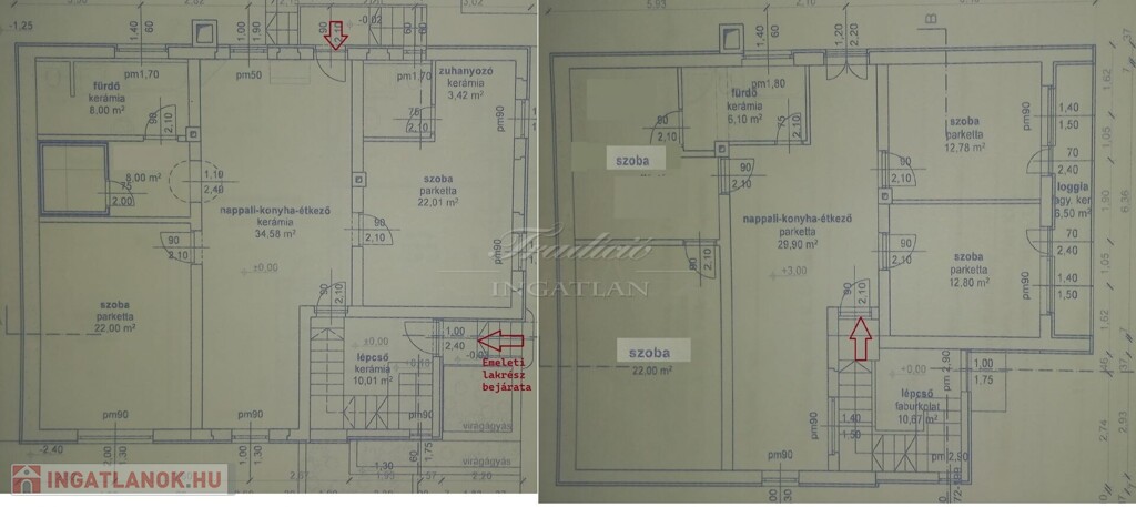 Összes lakótér: 205 m², melyből a Földszinti lakás hasznos alapterülete: 108 m2