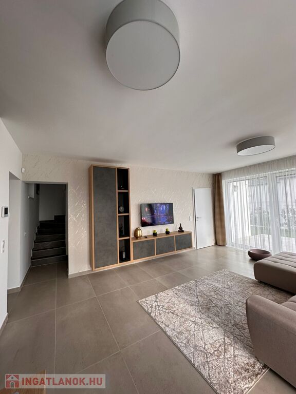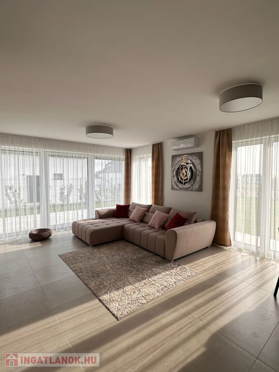 A 809 m²-es, gondosan parkosított (405 m²-es privát telekrész) telken álló, 115 m² alapterületű 3 hálószobás, 2 nappalis, 2 fürdőszobás (3 wc-s) otthon tágas, napfényes terekkel, igényesen válogatott anyagokkal és helyszínre gyártatott, egyedi bútorokkal várja új tulajdonosát. Földszinten amerikai konyhás nappali, hálószoba, fürdő és külön vendég-wc kapott helyet, míg az emeleten két világos hálószoba, egy újabb nappali és fürdőszoba, valamint panorámás terasz található.