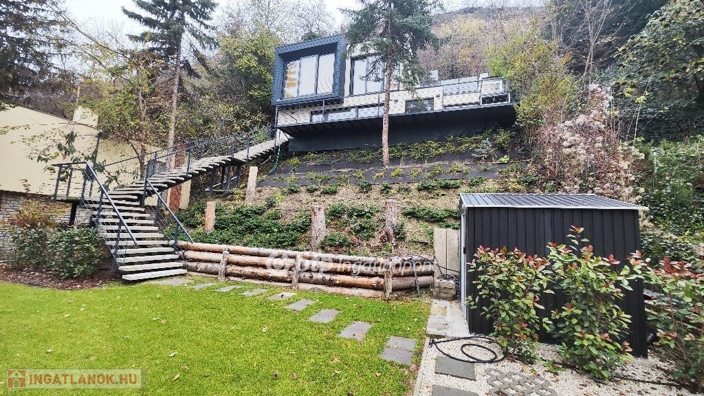 Egyedi megoldások, beépített bútorok, dizájnos helyiségek jellemzik a házat. Extraként a földszint teraszán is ki lett alakítva egy kerti zuhanyzó továbbá az emeleten elhelyezésre került egy jakuzzi is, amiből részben Balatoni panoráma nyílik évszaktól függően.