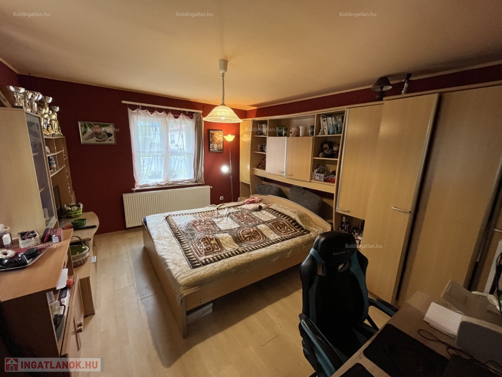 Balatonbogláron a központ közelében található 61 m2-es családi ház eladó. A lakóházban 2 szoba, előszoba-nappali-étkező-konyha, fürdőszoba-wc helyiségek találhatóak. Az épület fűtése a nappaliban lévő kandallóról működő központi fűtéssel megoldott, valamint a nappaliban légkondícionáló lettfelszerelve. A házat a tulajdonosa korábban felújíttatta, ekkor a villany-, és a vízvezetékek, a fal -, és az aljzatszigetelés lett kicserélve, illetve a fűtés lett még kiépítve. Az udvarra 2 autó be tud állni kényelmesen a térkövezett részre. Telek: 572 m2