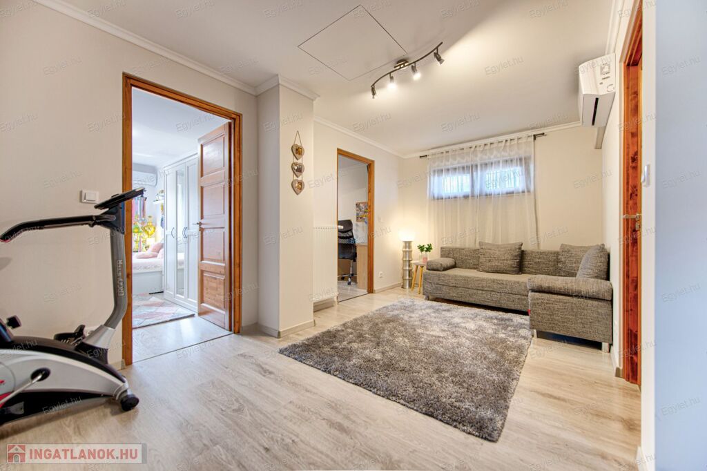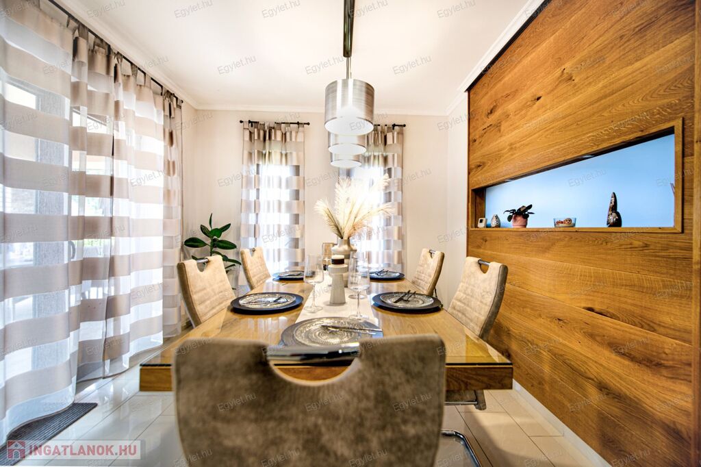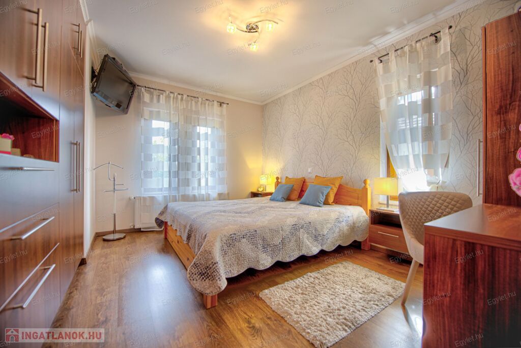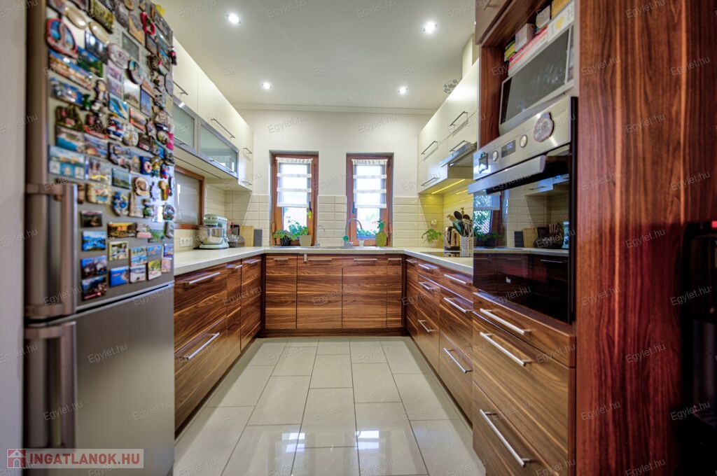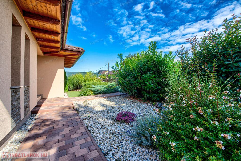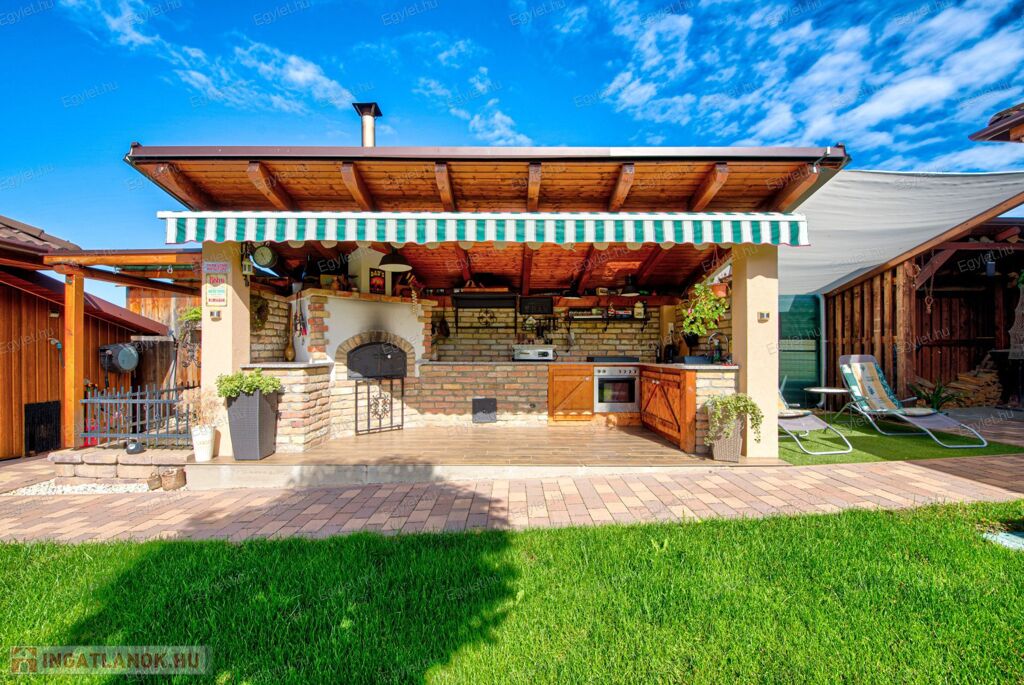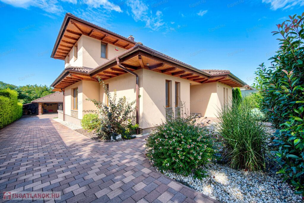 A Balaton déli partján, Balatonboglár csendes aszfaltozott utcájában, mediterrán stílusban 2017-ben épített gyönyörű, makulátlan 2 szintes családi ház igényes új tulajdonosát várja. A szépen rendezett környék adottságai kiválóak, az utcában szinte valamennyi ház 2010 után épült. A közelben minden megtalálható, ami a mindennapi életvitelhez szükséges (élelmiszer üzletek, hentesbolt, háztartási bolt, Tesco, iskola stb.). A Balaton és az M7 autópálya is mindössze 1,5 km távolságra érhető el. A számos extrával felvértezett 255m2 összterületű ingatlan kialakítása reprezentatív, minden részletében átgondolt, kifejezetten igényes kivitelezésű. A 795 m2 összközműves, parkosított, térkövezett, rendezett telken a lakóház mellett két autó kényelmes beállását biztosító, elektromos garázskapuval rendelkező garázs, egy tároló és egy kazánház található. A melléképület részben alápincézett, melyben kényelmes közösségi tér került kialakításra a szükséges funkciók biztosítása mellett (különálló WC, önálló kandalló, mosogatós konyhapult). Az intim kertben lett felépítve egy fedett grillterasz, kemencével, grillsütővel, bográcstartóval. A kerti növények locsolása automata öntözőrendszerrel biztosított. A kapu elektromos motorral működik, az ingatlan riasztórendszerrel és kamerarendszerrel is felszerelt. A háztartási víz megfelelő keménységét központi vízlágyító biztosítja. A lakóház elosztása: a földszinten a nappali és étkező egy légtérben, konyha, fürdőszoba, háztartási helyiség, WC, hálószoba, előtér és egy hatalmas fedett terasz. Az emeleten: két hálószoba, fürdőszoba WC-vel, valamint egy kisebb nappali. A szinteket elegáns, portugál mészkővel burkolt lépcsőház köti össze. A ház fűtését a típusában legmodernebb ún. faelgázosító kazán látja el, de alternatív megoldásnak gázkazán kiépítése is folyamatban van. A hőleadás radiátorokkal biztosított. További fűtési alternatívát jelenthetnek a nappaliban kialakított igényes kandalló, továbbá a ház hűtését biztosító split klíma berendezések is. A ház rezsikvóta alatti hőenergia felhasználását többek között a magas minőségű több cellás nyílászárók, valamint a 10 cm grafitos homlokzati szigetelés optimalizálja. Az ingatlan állandó lakhatásra és nyaralónak egyaránt ideális választás. Mindent összevetve, ez az igazán „beleszeretős”, nívós ház igazi otthont nyújt minden korosztálynak, akinek fontos a csend, a rendezett, nyugodt, biztonságos környezet, és fontosak a jószomszédi kapcsolatok. A hirdetéshez csatolt fotók, 3D séta, illetve videó megtekintését követően a felmerülő kérdések kapcsán felkészülten várom hívását a hét minden napján.