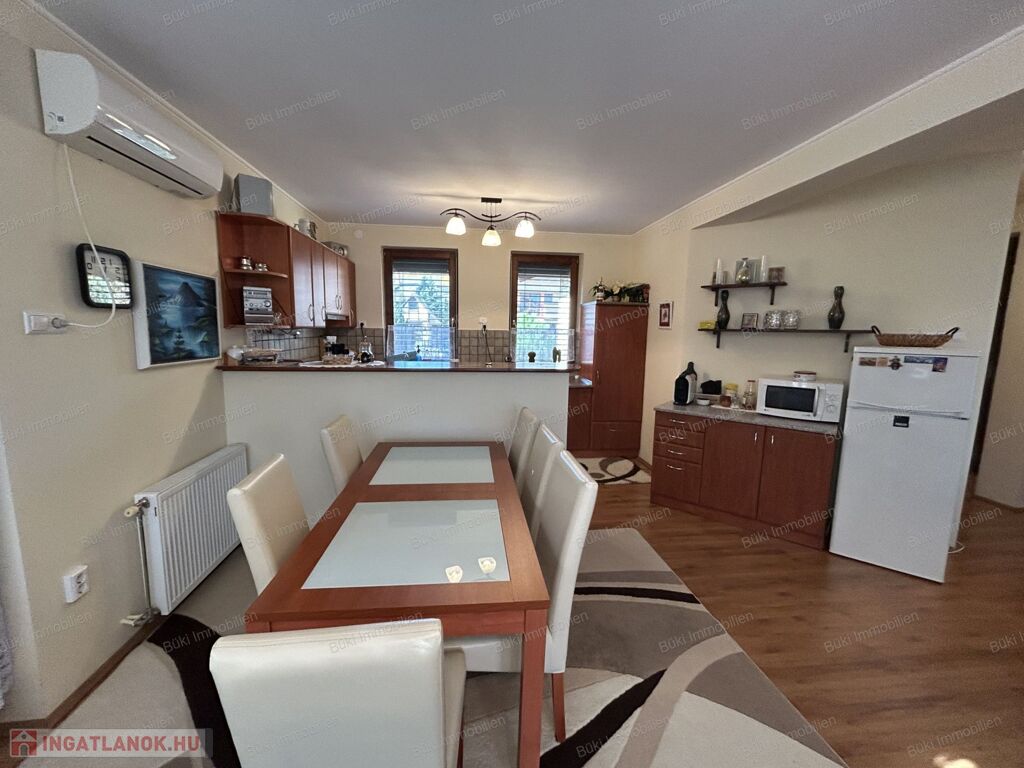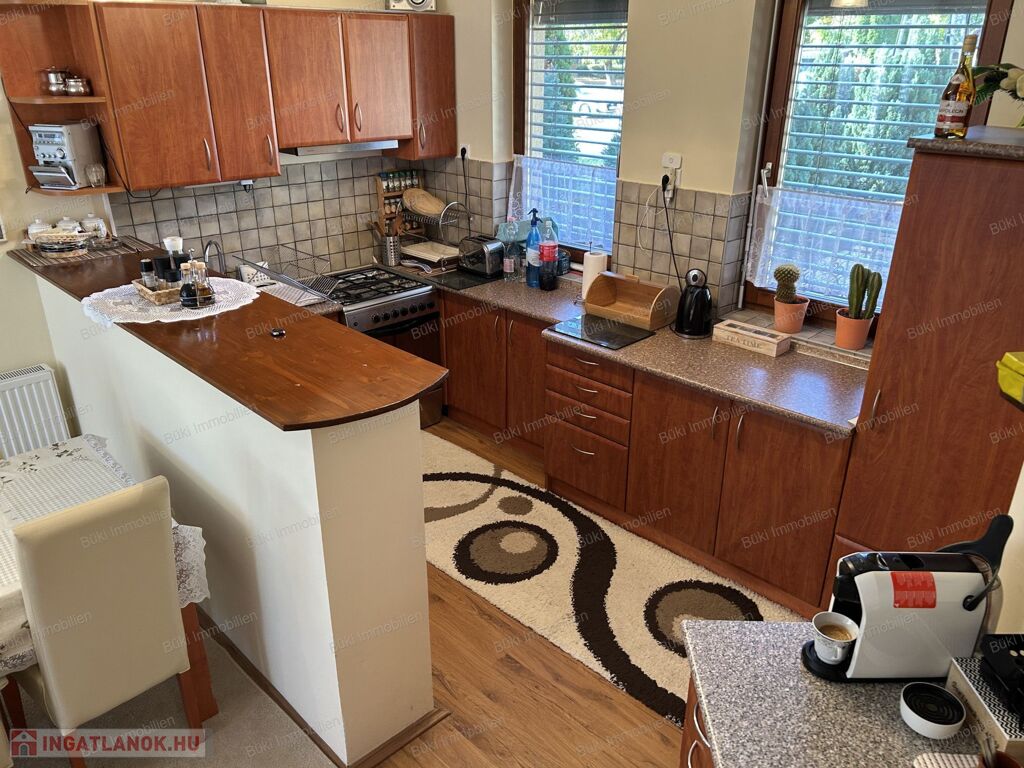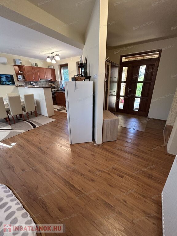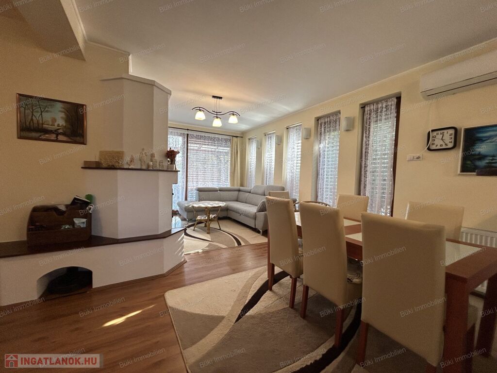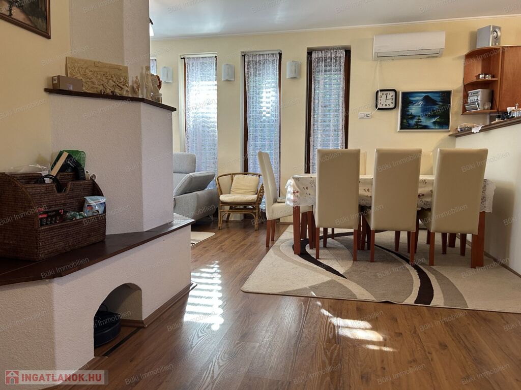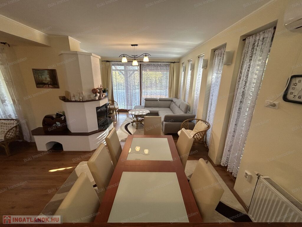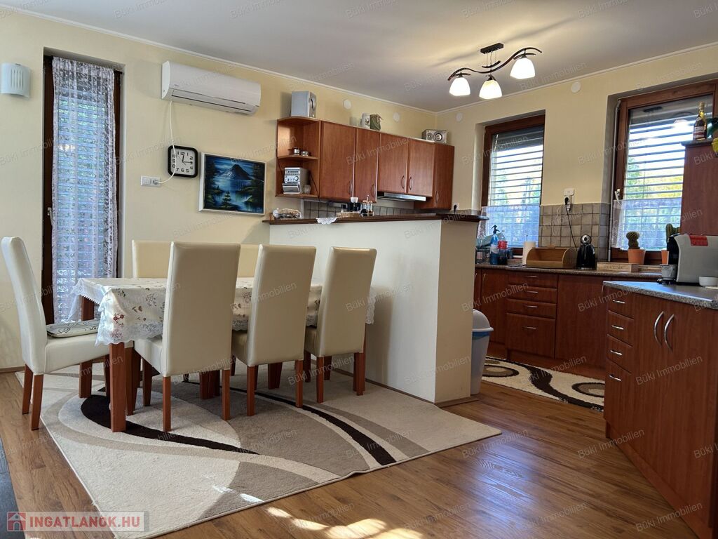Ez a modern, minden részletében igényes családi ház Balatonboglár legszebb környezetében kínál páratlan életminőséget. A négy külön bejáratú szoba tökéletes arra, hogy a család minden tagja megtalálja a saját nyugalmát, legyen szó csendes pihenésről vagy zavartalan munkáról, miközben a tágas terek és a nagy ablakok által beáramló természetes fény otthonos, mégis fényűző légkört teremt. Az amerikai konyhás nappali a társasági élet szíve, mert itt együtt főzhet szeretteivel, miközben megosztják a nap élményeit, vagy együtt nézik kedvenc sorozatukat vacsorakészítés közben. A ház kifinomult hangulatát a természetes fából készült nyílászárók melegsége, a prémium minőségű kerámia- és laminált padlóburkolatok, valamint a földszinti cserépkályha romantikus bája emeli új szintre, amely minden vendéget lenyűgöz.