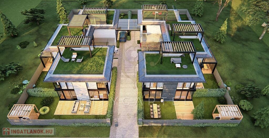 Természetvédelmi terület határán 2 X 720 nm-es telken 7 db (önálló házként funkcionáló) lakást kínálunk eladásra. A belső 2 szintes prémium lakások tetőterasszal, saját kertrésszel, valamint gépkocsibeállóval rendelkeznek.