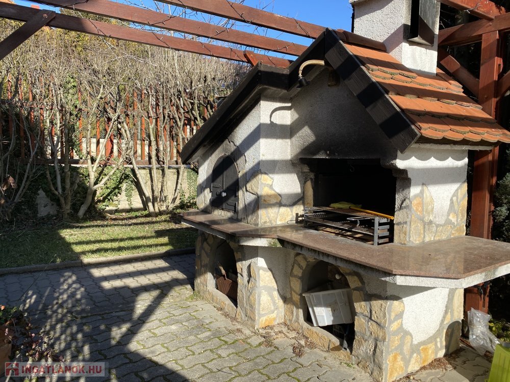 A privát kertben elhelyezett úszómedence, fedett grillterasz és bográcshely tökéletes helyszínt nyújt a pihenéshez és kikapcsolódáshoz.