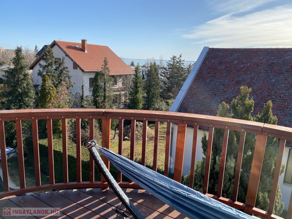 Az emeleten található 11 m²-es teraszról csodálatos balatoni panoráma tárul elénk, míg az alagsor külön lakrészként is használható, saját konyhával és fürdőszobával.