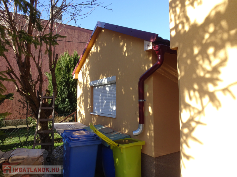 A telken, közvetlenül az utcafrontra 2024-ben épült fel egy 24 m2-es homlokzatszigetelt garázs, amely Hörmann elektromos kapuval ellátott, ablakos, és egy 15 m2-es tároló is helyet kapott itt, egybeépítve a garázzsal. Ez akár vállalkozásra is alkalmas lehet.
