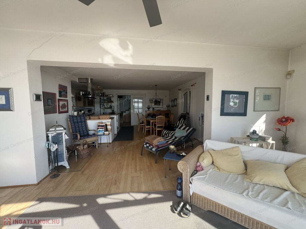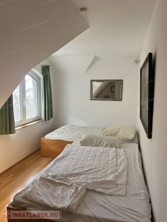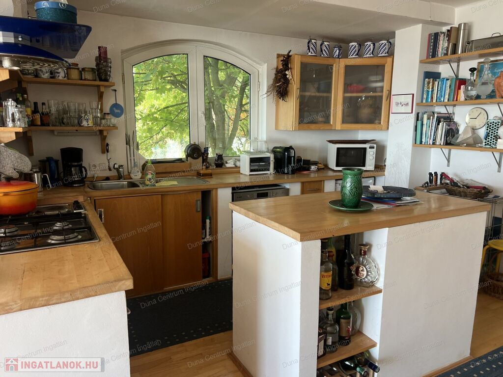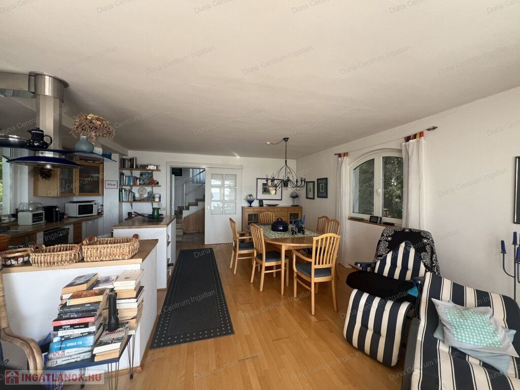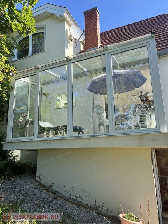 Balatongyörök kedvelt, csendes, erdő alatti részén örök panorámás ház eladó. Az ingatlan földszinti részén tágas nappali, amerikai konyha étkezővel, télikert, kis fürdőszoba ,míg a tetőtérben kettő szoba, gardrób, fürdőszoba található. A fűtés gáz kazánnal, illetve kályhával megoldott. A ház alatt hangulatos borospince van. A kert rendezett, árnyas fák alatt pihenhetünk. A telken egy különálló kis ház is található, amely alatt szintén borospince van.