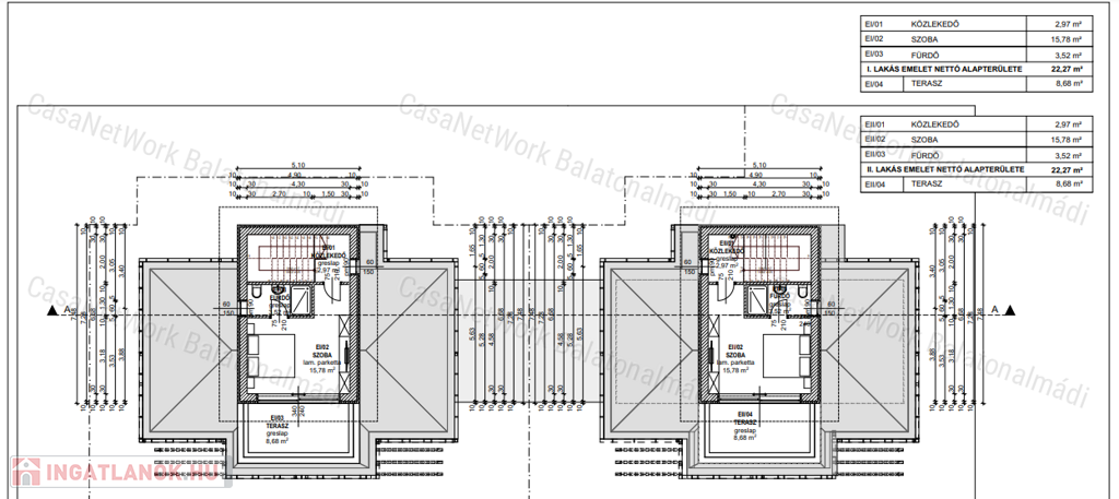 - a két ikerházfélnek nincs közös fala
