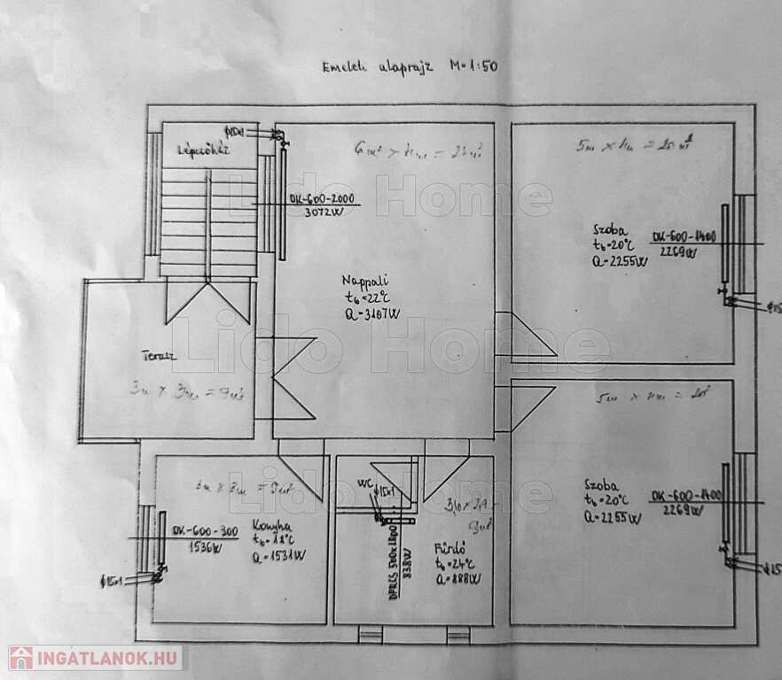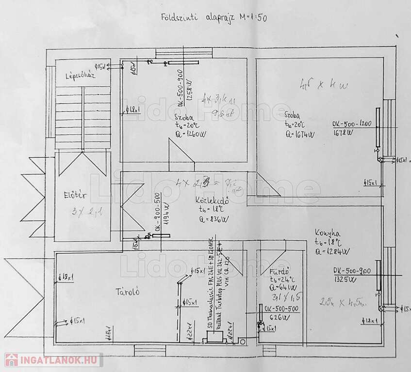 - földszint helyiségei: 2 szoba, konyha, fürdő, kazánház, garázs