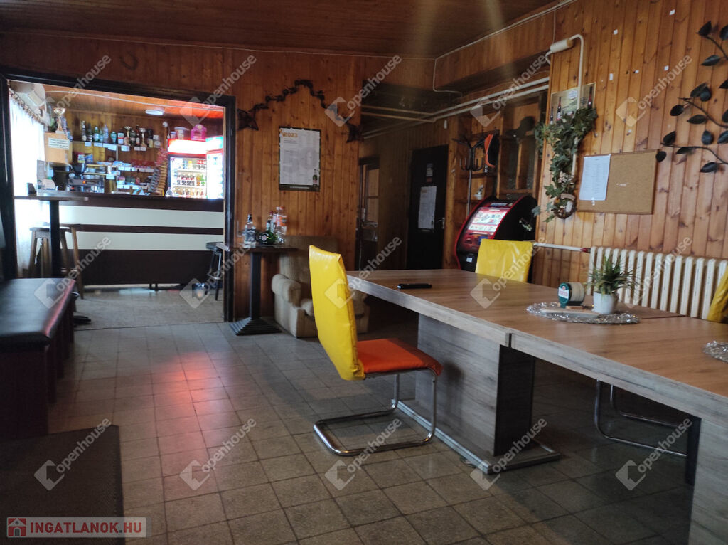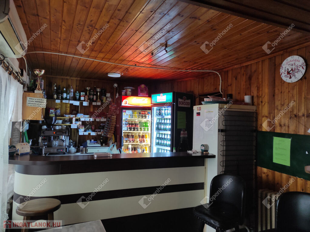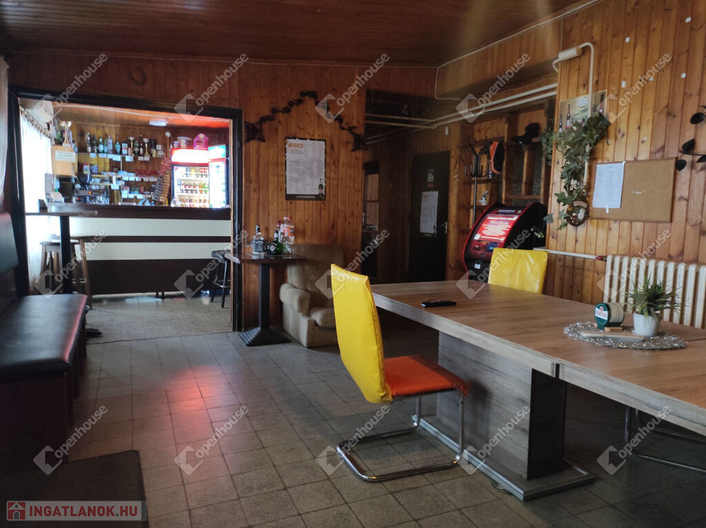 Vendéglátó egység, jelen kialakításában közel 90 nm-en: közlekedő, légkondicionált vendégfogadó tér, külön terem (mely esetlegesen, zártkörű rendezvények helyszínéül is szolgálhat ), söntés, mellékhelyiségek, belső raktár, kazánház.