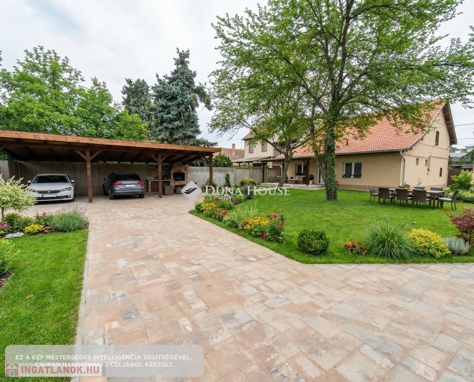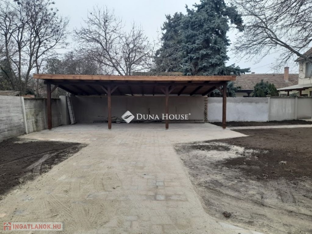 Az ingatlanhoz tartozik egy három állásos fedett kocsibeálló, de számtalan más hasznosítási lehetőséget is tartogat. A nagykaputól a kocsibeállóhoz térkövezett út vezet a házhoz térkövezett járda.