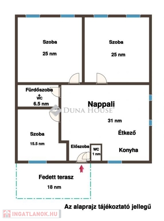 - három szoba (25, 25 és 15.5 nm);