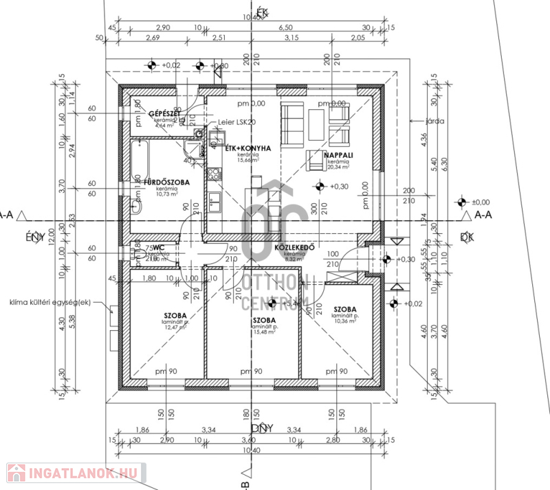 A 426 m²-es telken épülő, 99,80 m² alapterületű ingatlan amerikai konyhás nappalival és 4 szobával tervezett. A válaszfalak még nem kerültek kialakításra, így az új tulajdonos szabadon formálhatja a belső elrendezést. A tető modern antracit betoncserép fedéssel már elkészült.