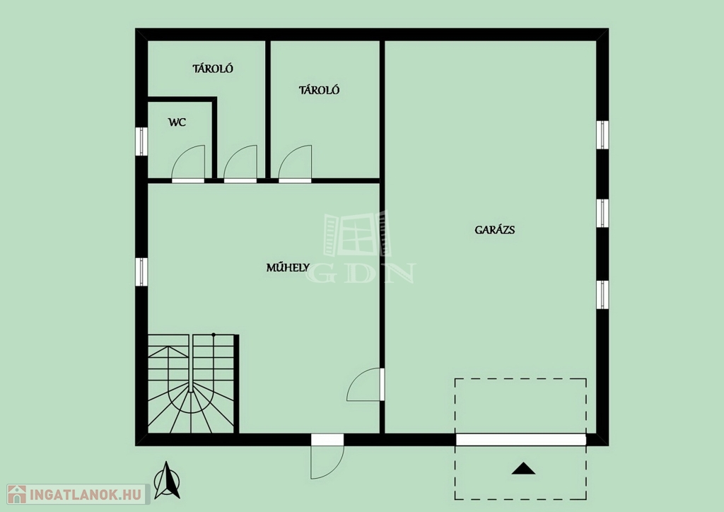 - Garázsszinten 3 autó beállási lehetőség + tusoló, mosókonyha, tároló és műhely szerelőaknával.