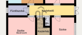 Az ingatlan három tágas, világos szobával, nagy konyhával, főzőfülkével, kamrával, fürdőszobával, külön WC-vel, kazánházzal és közlekedővel rendelkezik.