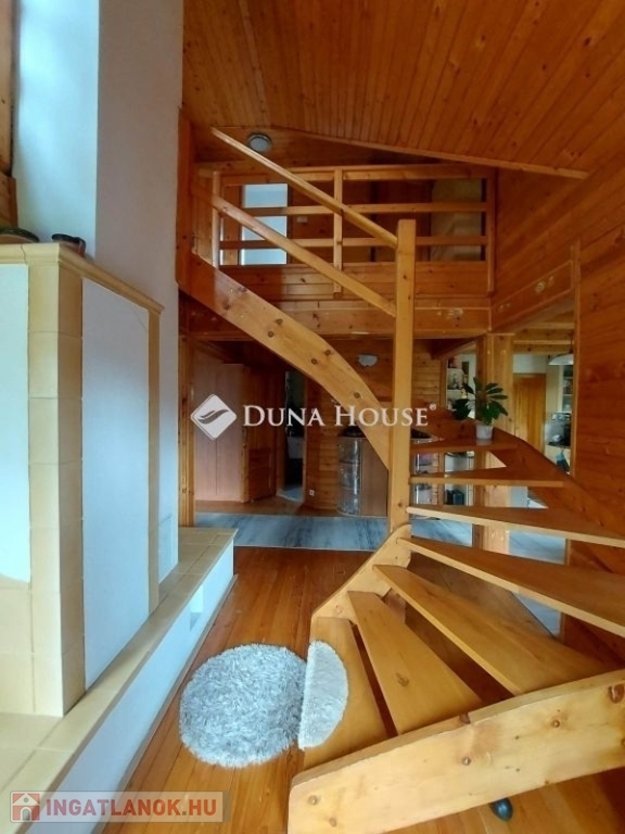 Eladó Birján településen egy fa-könnyűszerkezetes lakóingatlan.Az épület egy enyhén lankás, 3000 nm-es területen helyezkedik el, 2003-ban készült, tetőtérbeépítéses, jól átgondolt, kellemes otthon.Az ingatlan 3 háló-nappali-konyha-étkező elrendezésű, mindkét szinten fürdőszobával rendelkezik.Alsó szinten egy tágas fedett teraszon át jutunk az udvarra. Alsó szinten a közelmúltban korszerű műanyag nyílászárók lettek beépítve, tetőtérben szintén hőszigetelő üvegezésű fa ablakok vannak.Az épület fűtése egy a nappaliban elhelyezett cserépkályhával lett megoldva, mely a teljes házat kifűti.Kiegészítésnek a földszinti fürdőben beépítésre került a padlóburkolat alatt egy infra fűtőfólia.Az udvarban helyet kapott egy szintén fa szerkezetű 40 nm-es épület, mely eredeti funkciója garázs vagy tároló, de belső szigeteléssel akár egy önálló lakóépület is kialakítható belőle.A terület növényekkel beültetett, illetve egy kerti tó is kialakításra került, melyben jelenleg nincs víz.Az udvaron a dísznövényeken kívűl 25 db termő gyümölcsfa is található, illetve rendelkezésre áll egy 14m3-es csapadékvíz tároló.Igény esetén a meglévő mellé vásárolható egy nagyobb, 3500 nm-es terület is.További kérdések esetén kérem keressen bizalommal!