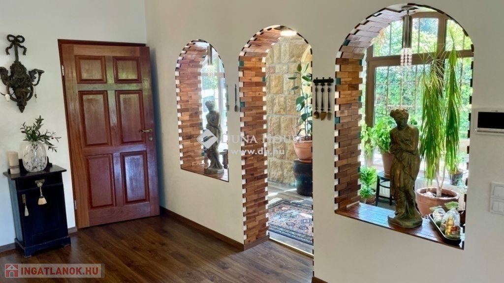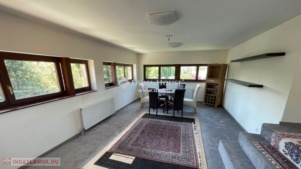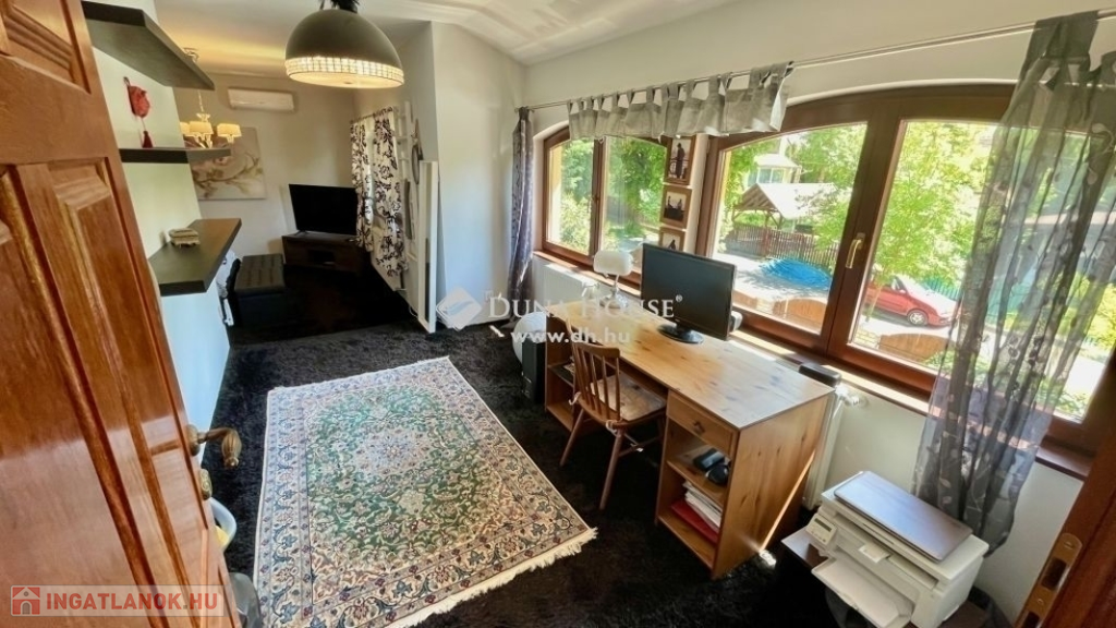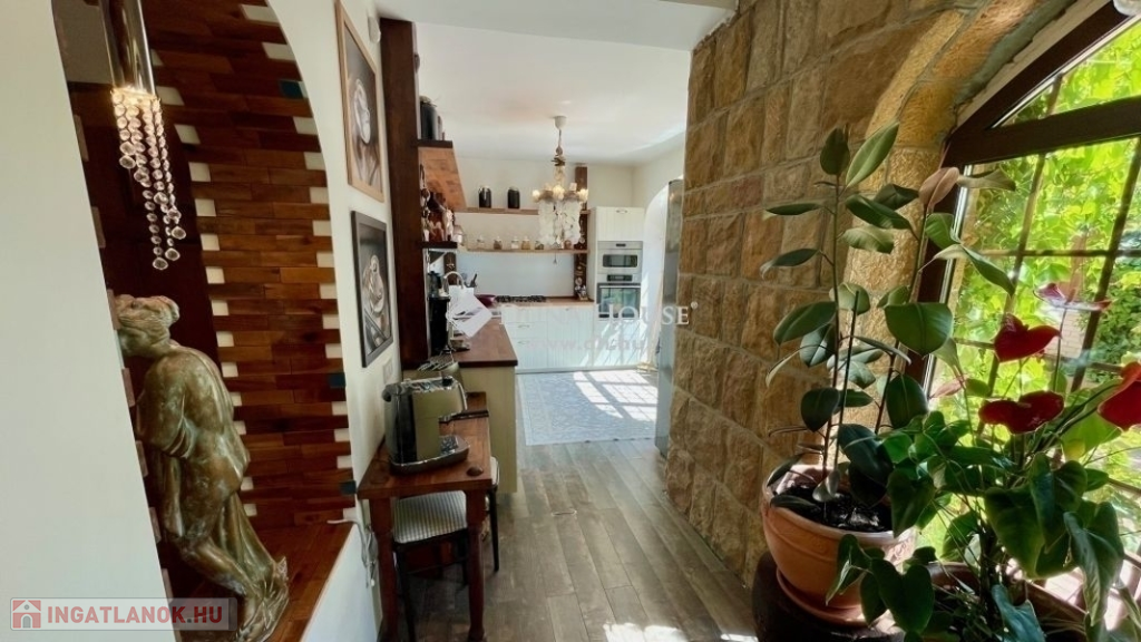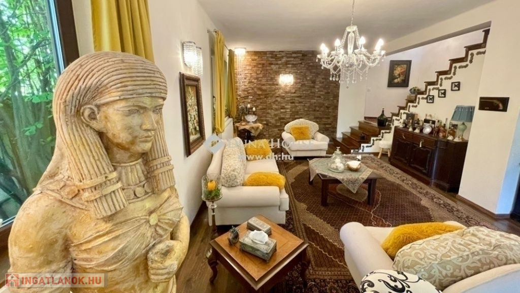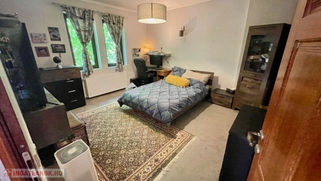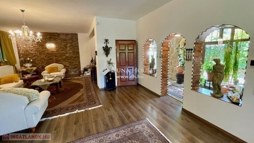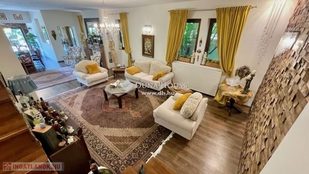 Budapesten a II. kerületben, Hűvösvölgyben, Erzsébetligeten eladásra kínálok csodás panorámával többgenerációs, három szintes családi házat. Gyönyörű ősfás környezetben, csend és a nyugalom szigete, sarok telken szépen gondozott kerttel. A telek 835 m², rajta 367 m² ház található. A ház mellett egy 24 m² garázs és három autó számára fedett beálló lett kialakítva. Igényes kert és az udvar ahol esővíztároló, és víztisztító lett telepítve, automata öntözőrendszerrel. Az egész házra jellemző a nagy tágas világos terek.Földszinten előszoba padlófűtéssel fogadja az érkezőket majd a hatalmas nappaliba és étkezőbe jutunk. A nappali hangulatát a téli estéken kandalló biztosítja. Nyáron a nagy terasz nyújt kellemes pihenést. A nappaliból a vendég szobába érkezünk ahol zuhanyzó található, ezen a szinten még mosdó és toalett van kialakítva.Szintén a földszinten egy tágas konyha szolgája a házban élők kényelmét.Az emelet központi része az igényesen, modern gépekkel berendezett konyha, étkező pulttal és nappali nagy erkéllyel. Három nagy szoba található ezen a szinten. Egy szülői háló melyben dolgozó szoba és fürdőszoba lett kialakítva. Két különbejáratú szobát és egy gardróbot is találunk az első emeleten. Szobákhoz klíma berendezés tartozik, ezen a szinten egy külön álló fürdőszoba található WC-vel.A tetőtérben három nagy szoba várja lakóit. A legnagyobb szoba alkalmas konyha és fürdőszoba kialakítására is.Közelben található: magánóvoda, Francia iskola, Gyarmati Dezső uszoda, teniszpálya, Tesco, Auchan.10 perc nyire Széphalom bevásárlóközpont, gyógyszertár, Lovas cukrászda, Pepco.Másik irányba: szintén 5-10 percnyi távolságra HŰVI szolgáltatóház, posta, pékség, kávézó, kondi terem, Lidli, DM.5 buszmegálló távolságra található Hűvösvölgy központja.Szívből ajánlom mindenkinek, több generációs családoknak, befektetőknek és mindenkinek akinek fontos a szép környezet a természet közelsége a Jó levegő és megbízható szomszédok.Várom megtisztelő hívásokat.