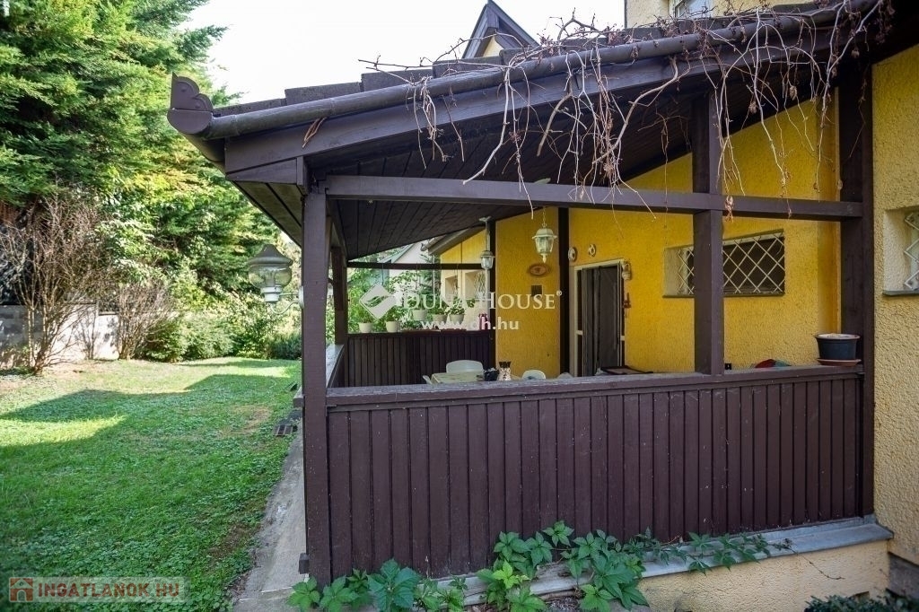 Amely ideális választás lehet a nyugodt, csendes, kertvárosi életet kedvelők számára. Az ingatlan egy csendes, zöldövezeti utcában helyezkedik el. Az épület tervezésénél figyelembe vették a praktikus, és élhető tereket, ami a teljes kényelmet szolgálja az itt élők számára. A ház különlegessége az elszeparált két lakrész, és a romantikus kert, amelyben hatalmas fenyőfák találhatók. A teraszról csodálatos panoráma tárul elénk.
