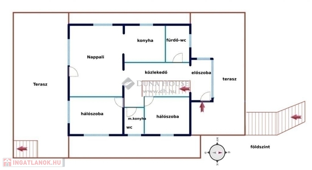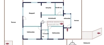 A 116 m2-es földszinten előszoba, 2 fürdő-wc, 2 hálószoba és a hatalmas nappali-konyha terasz kapcsolattal található. A nappalival kapcsolatos terasz közel 50 m2-es.