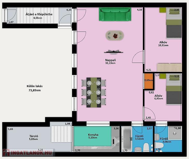 A földszint és az emelet 2 külön lakásként is hasznosítható, mivel a bejárat kellő szeparálhatóságot biztosít.