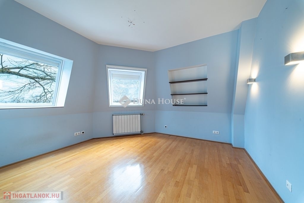 PANORÁMÁS WELLNESS OTTHON A II. KERÜLETBENAmikor az otthon nem funkció, hanem életminőség.Budapest II. kerületének egyik legértékállóbb, zöldövezeti részén kínálunk megvételre egy 292 m²-es, háromszintes, panorámás családi házat, amely a privát tér, a csend és a kifinomult életvitel ritka egyensúlyát teremti meg.Ez az ingatlan nem törekszik feltűnésre mégis minden részletében azt képviseli, amit a budai felső kategória jelent: időtálló érték, nyugalom és kontrollált luxus.Főbb paraméterek- Alapterület: 292 m²- Telekterület: 492 m²- Szintek száma: 3- Szobák száma: 5- Állapot: jó állapotú- Panorámás fekvés- Szigetelés- Szintenként fürdőszobaFöldszint:- Tágas, világos nappali kandallóval- Teraszkapcsolatos étkező- Modern, jól felszerelt gépesített konyha- Vendégszoba gardróbbal- FürdőszobaEmelet:- Panorámás napsütéses hálószobák - mindenhol beépített szekrények- Elegáns fürdőszoba- Külön konyha (akár önálló élettérként is használható)Alsó szint a ház egyik legnagyobb értéke ami nem extraként jelenik meg hanem a mindennapi regeneráció természetes részeként.- Fűtött beltéri medence- Finn szauna és jakuzzi- Wellness és kikapcsolódás saját térben- Kétállásos garázs és tároló- MosókonyhaKorszerű műszaki háttér- Vadonat új modern hőszivattyús rendszer- Energiatakarékos működés- Napelem rendszer- Légkondicionálás- Elektromos redőnyök és szúnyoghálók- Párátlanító a medencetérbenParkolás- Kétállásos garázs, ahonnan közvetlen átjárás van az élettérbe- További felszíni parkolási lehetőség a vendégeknekLokáció ami nem reprodukálható:- Csendes, zöldövezeti környezet a II. kerületben- Panoráma a budai hegyekre- Nemzetközi iskolák közelsége- Gyors elérhetőség a város feléEz a környezet nem trend, hanem státusz.Pozíció a piaconAz ilyen adottságú ingatlanok panoráma, wellness szint, többgenerációs lehetőség ebben a lokációban korlátozott számban érhetők el.Ez nem egy választás a kínálatból.Ez egy kategória a kínálaton belül.Összegzés- Egy otthon azok számára, akik nem keresnek hanem választanak.- Akik értik, mit jelent a tér, a csend és a minőség hosszú távon.- Akik nem kompromisszumot kötnek, hanem szintet lépnek.- Megtekintés kizárólag előzetes egyeztetéssel.Megtekintés előzetes egyeztetés alapján.