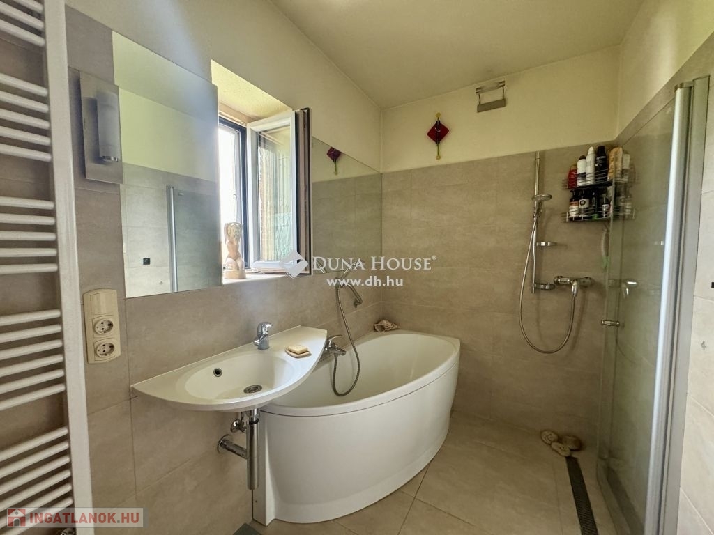 Földszinti lakás: 3 rétegű Internorm fa ablakok kerültek beépítésre, amelyek kívül alumínium borításúak, illetve található rajtuk szúnyogháló és redőny (a konyhai ablak redőny nélküli). A párkány kívül márvány, belül fa. Felszerelésre került egy klíma és egy légcserélő is. Riasztóval felszerelt, a bejárati ajtó acélból készült. A fürdőszobában a csempe alatt fűtésszálak is találhatók. A fürdőszobában megtalálható fürdőkád és épített zuhanyzó is.