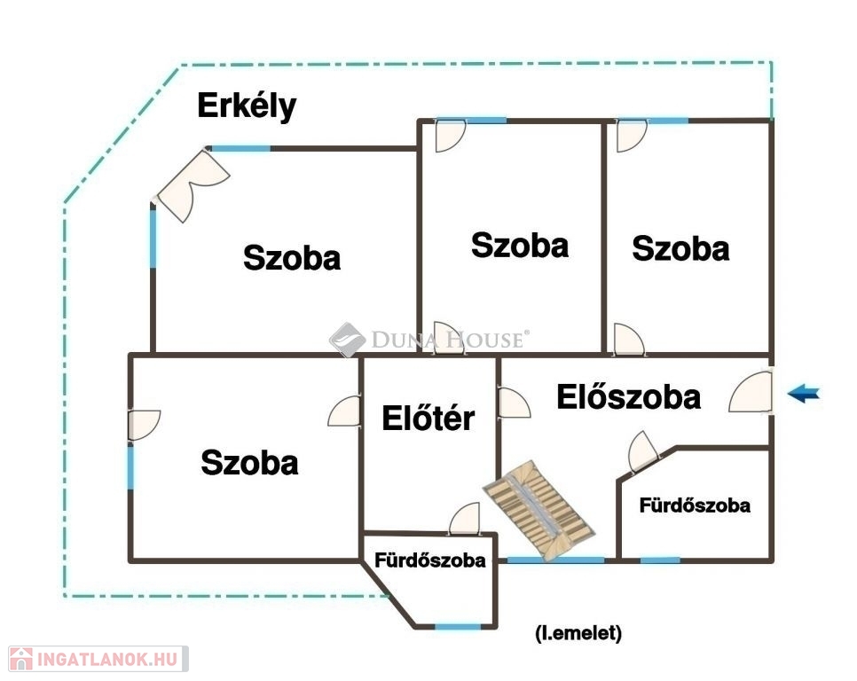 - 2 erkély, amelyek közül az egyik körbeöleli a házat