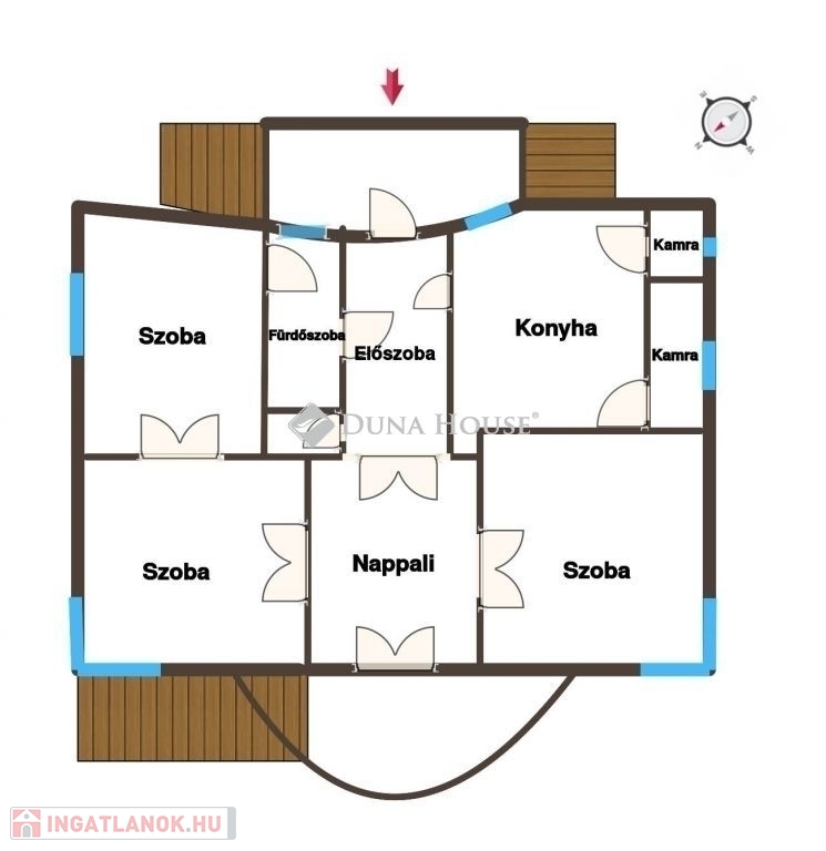 Nyílászárók: dupla üveges ablakok, eredeti fa keretekkel, s fa ajtókkal