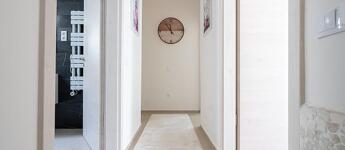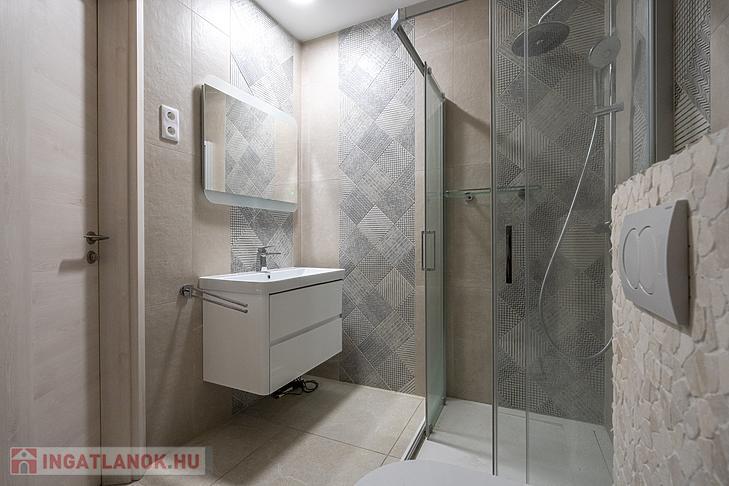 A szobákban laminált parketta, a vizes helyiségekben járólap található.