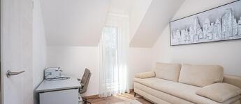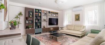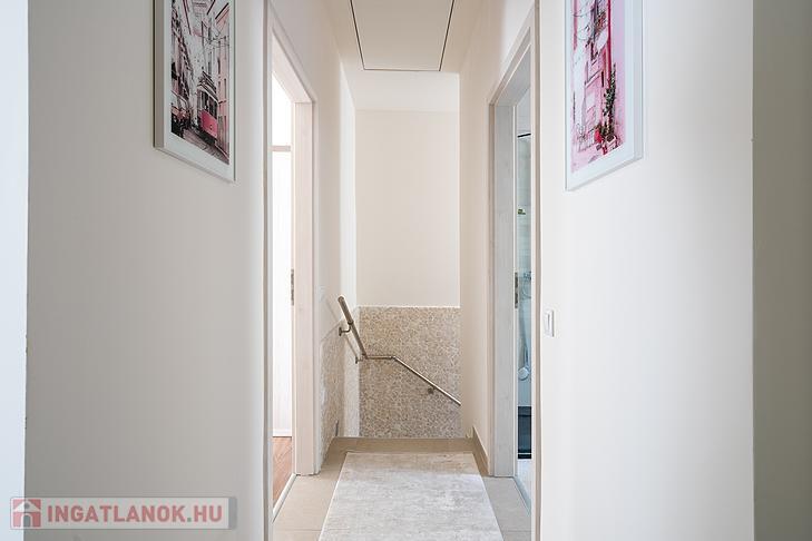 A házba elektromos redőny, és hűtő/fűtő klíma is beszerelésre került az elektromos kapu és kamerarendszer mellett.