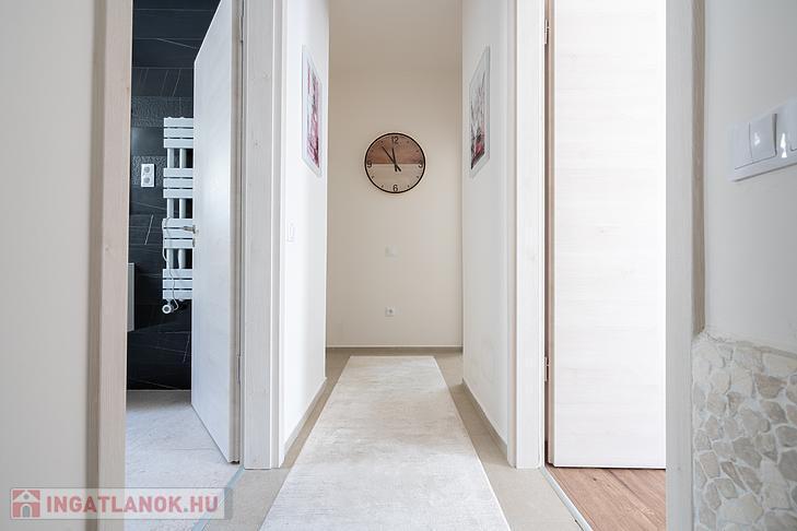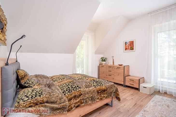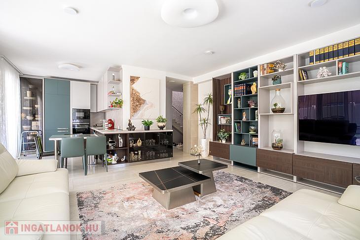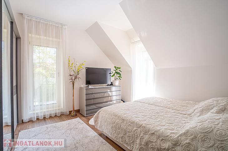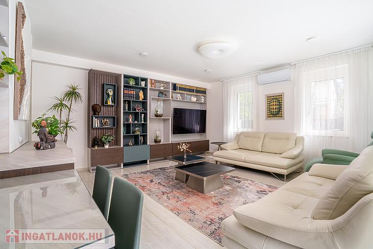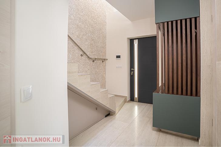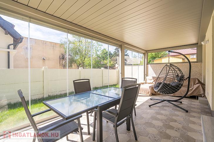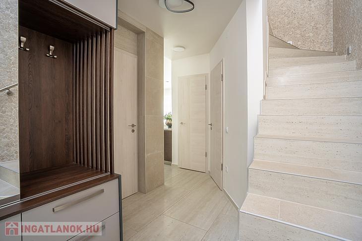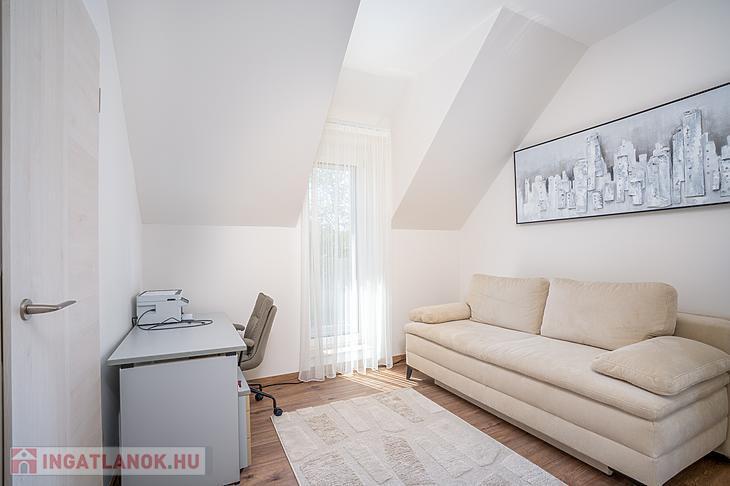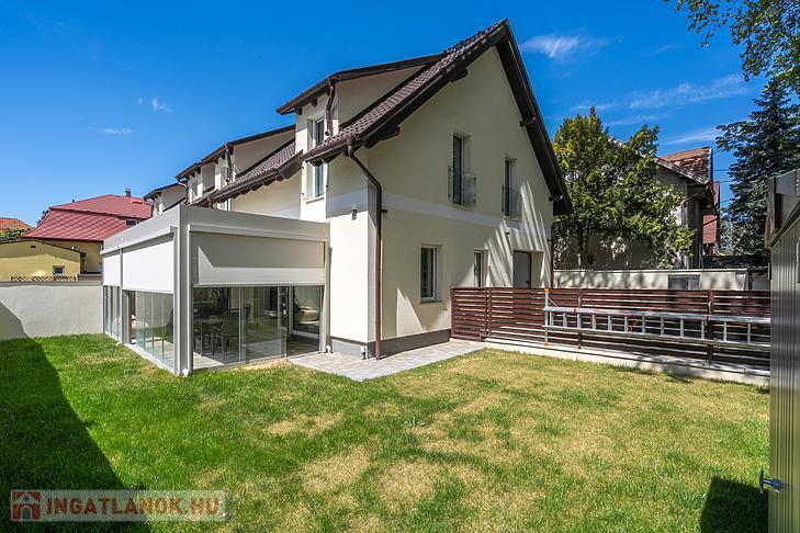 A 135 négyzetméteres, duplakomfortos ingatlan 2025-ben épült, 120 négyzetméteres kertkapcsolattal.