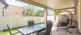 Elosztása amerikai konyhás nappaliból, 3 szobából, 2 fürdőből és egy fűtött garázsból áll. Tartozik még a házhoz egy 21 négyzetméteres terasz is, valamint egy Bioklimatikus Pergola-ból élvezhetjük a kert nyugalmát.