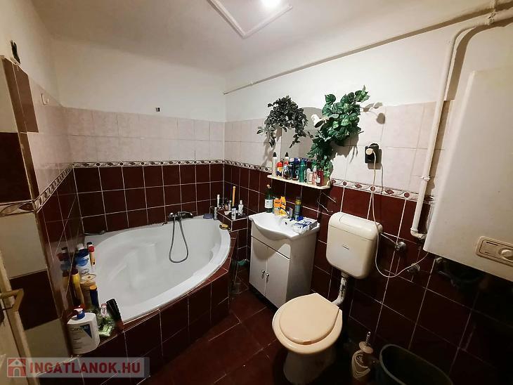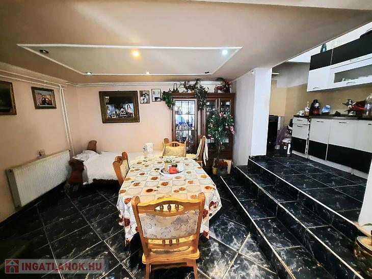 Az elsődleges lakrészbe 3 bejárati lehetőség nyílik: az előkertről a nagyszobába, egy előszobába, valamint az amerikai konyhás nappaliba. A melléképületben kialakított lakrész külön bejárattal rendelkezik. Az ablakok cseréje megtörtént műanyagra, a melléképületben fakeretesek. A fűtést cirkó gázkazán biztosítja lapradiátorokon keresztül, de a két fő szobában gázkonvektor és cserépkályha van beépítve. A garázs jelenleg szobaként funkcionál. A járólapok jó állapotúak.