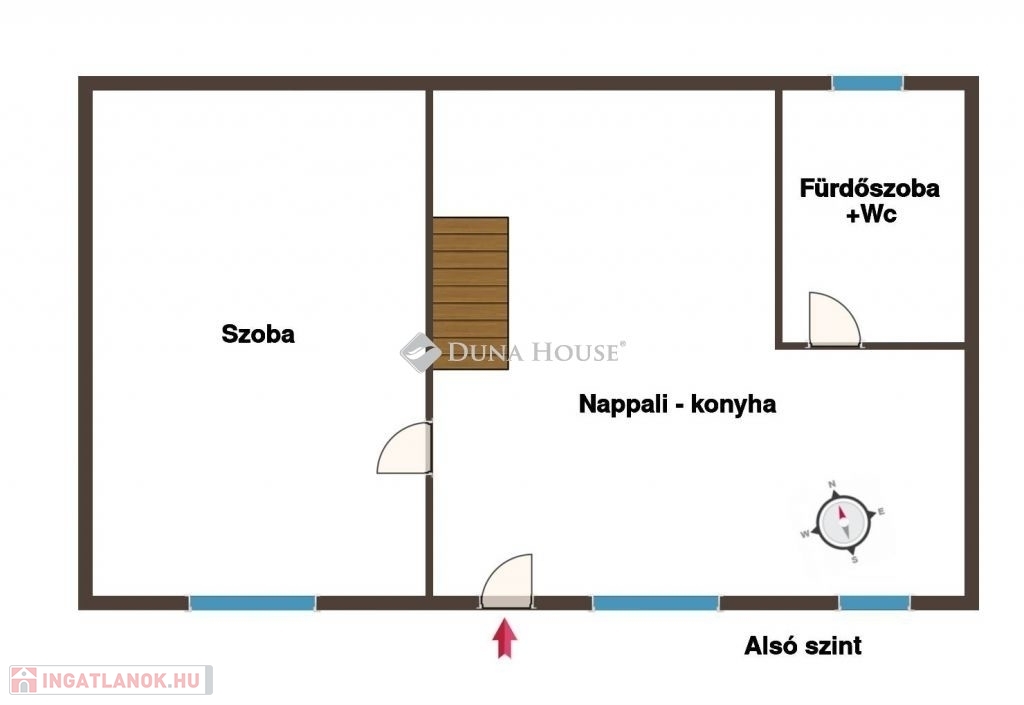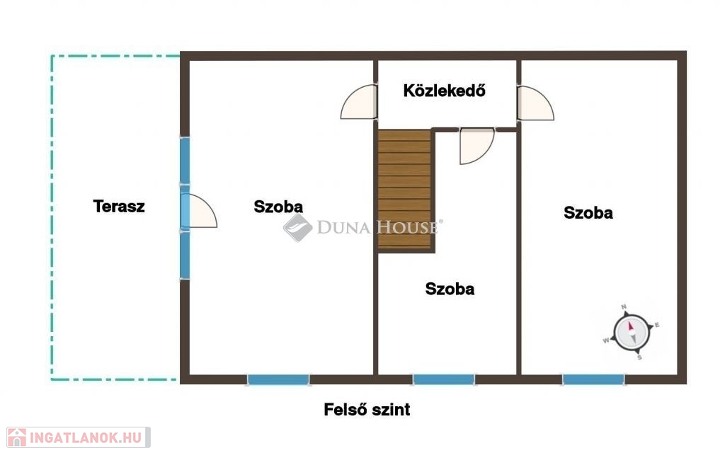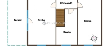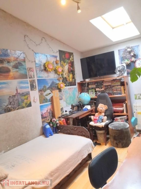 Az ingatlan belső két szintes kialakítású, tetőterét 10 évvel ezelőtt építették be. Az alsó szinten egy amerikai konyhás nappali, egy fürdőszoba+wc, és egy különnyíló szoba, míg felső szintjén 3 különnyíló szoba, és az ezeket összekötő közlekedő helyiségek kaptak helyet. A legnagyobb emeleti szobából hangulatos, csendes terasz nyílik.