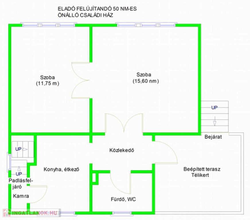 A felújítás során a konyha áthelyezésével könnyedén kialakítható egy modern nappali és két külön nyíló hálószoba, így ideális választás lehet fiatal pároknak első közös otthonként, de akár az idősebb generációnak is, akik egy kisebb, jól fenntartható, kertkapcsolatos házban képzelik el a nyugodtabb mindennapokat.