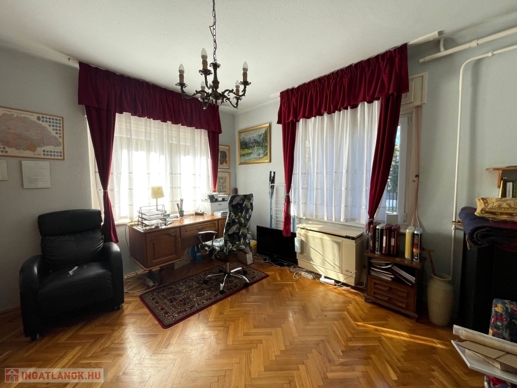 XVI. kerületben, Sashalmon eladó egy hatalmas, 894 m2-es telken elhelyezkedő 180 m2-es, 6 szobás, önálló családi ház. Az ingatlan alsó szintje a 70-es években, a felső szint pedig 83-ban épült. A két szint külön bejáratú valamint külön villany és gázórával rendelkezik. A fűtést a felső szinten gázcirkó készülék, az alsó szinten pedig konvektor és egy fatüzelésű cserépkályha biztosítja.